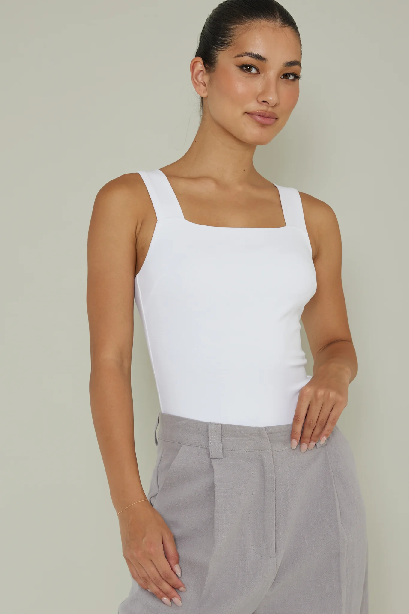 High Time Square Neckline Leotard White
