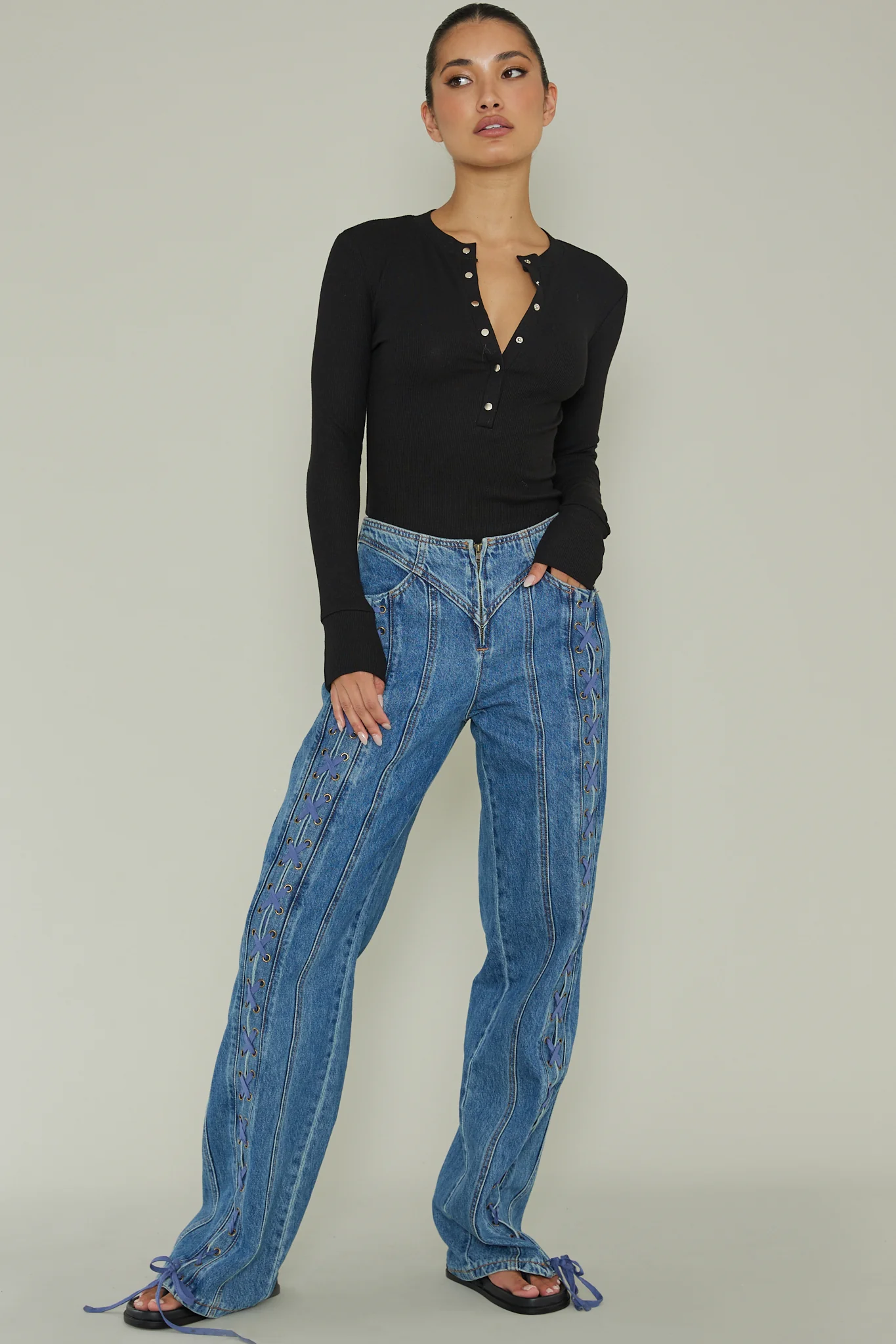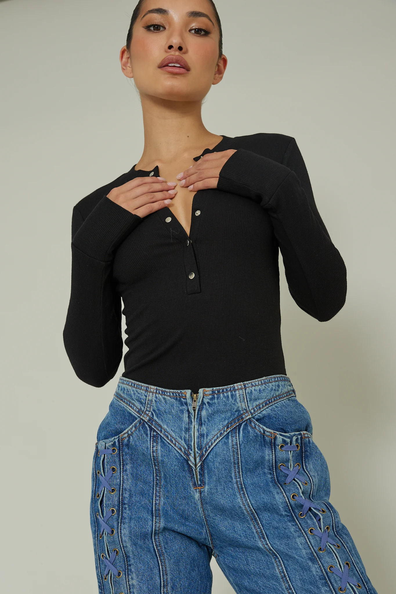Henley Snap Front Bodysuit Black