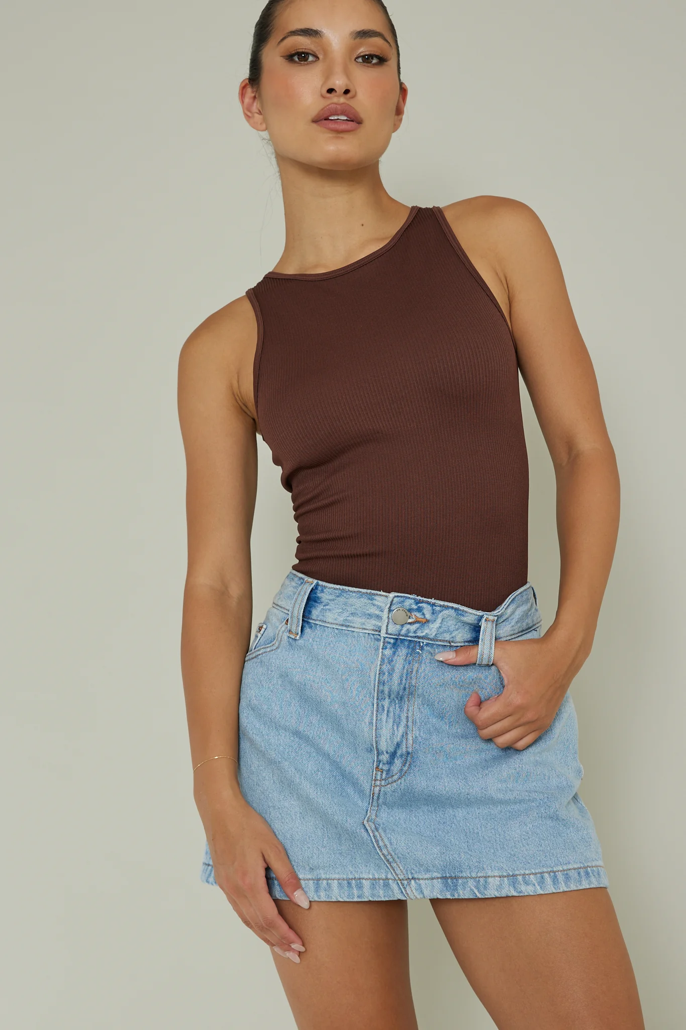 Attitude Ribbed Leotard Chocolate