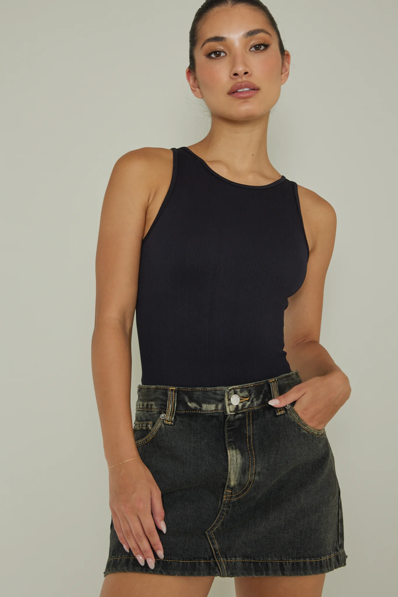 Attitude Ribbed Leotard Black