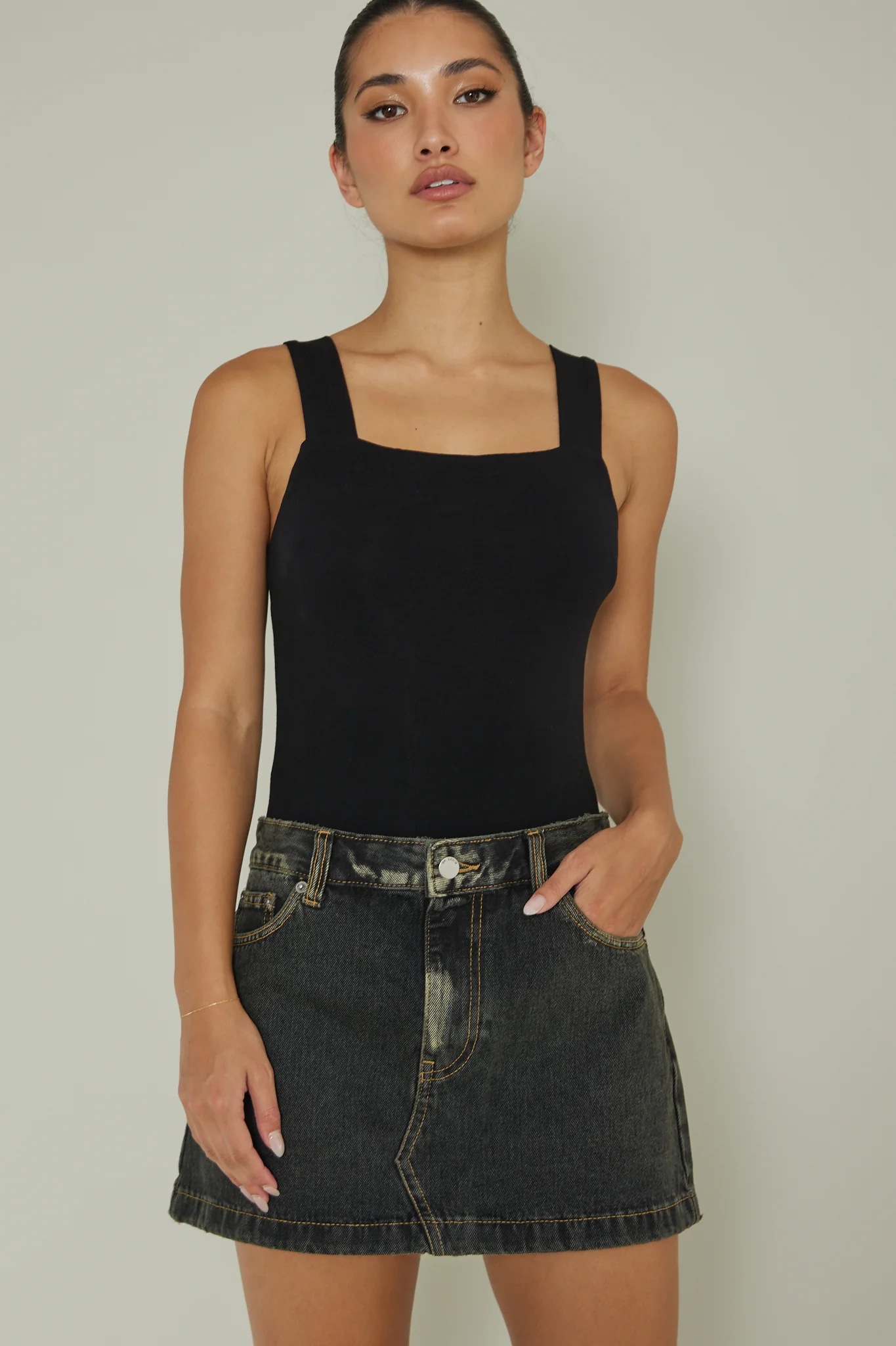 High Time Square Neckline Leotard Black