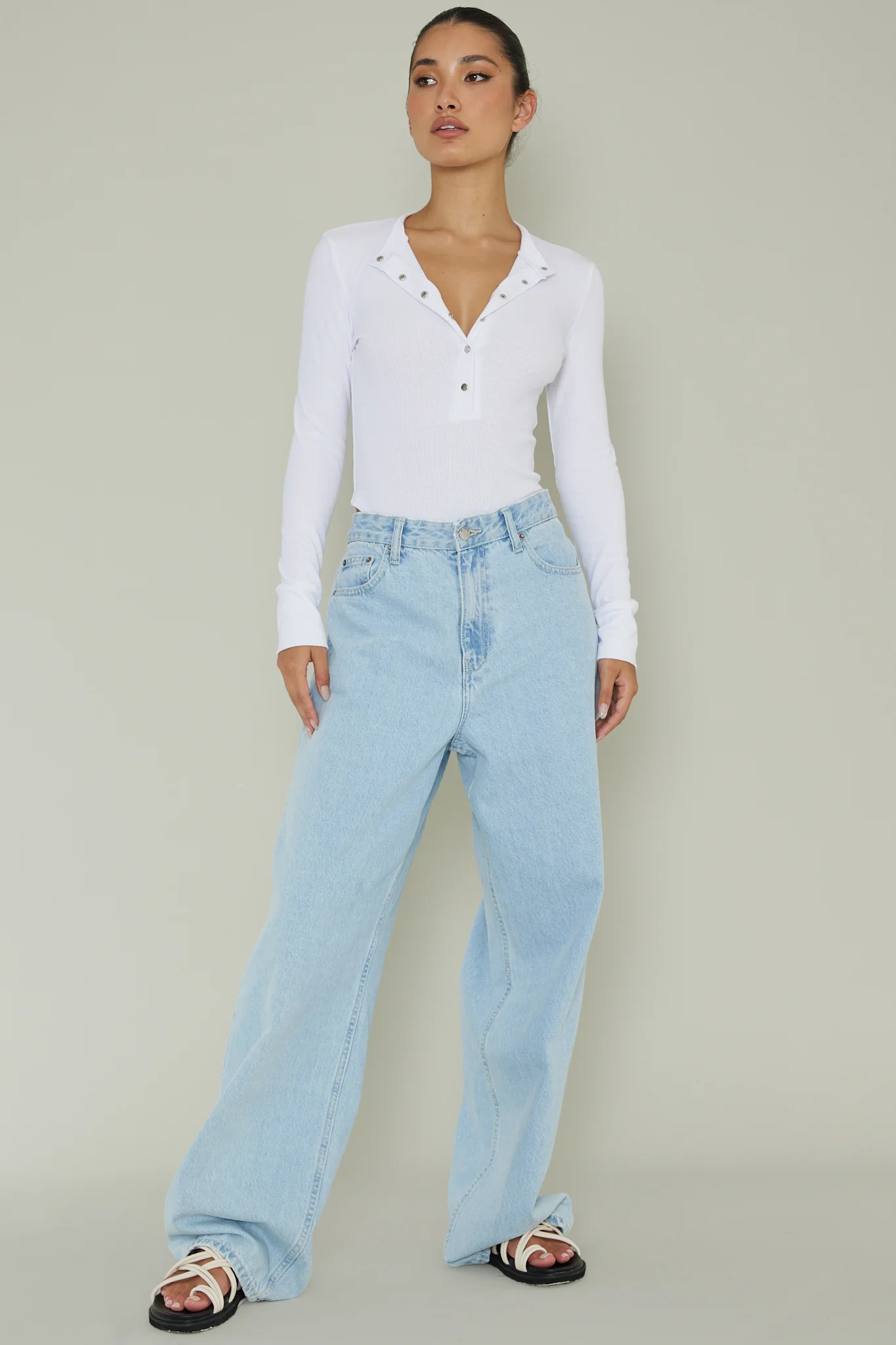 Henley Snap Front Bodysuit White