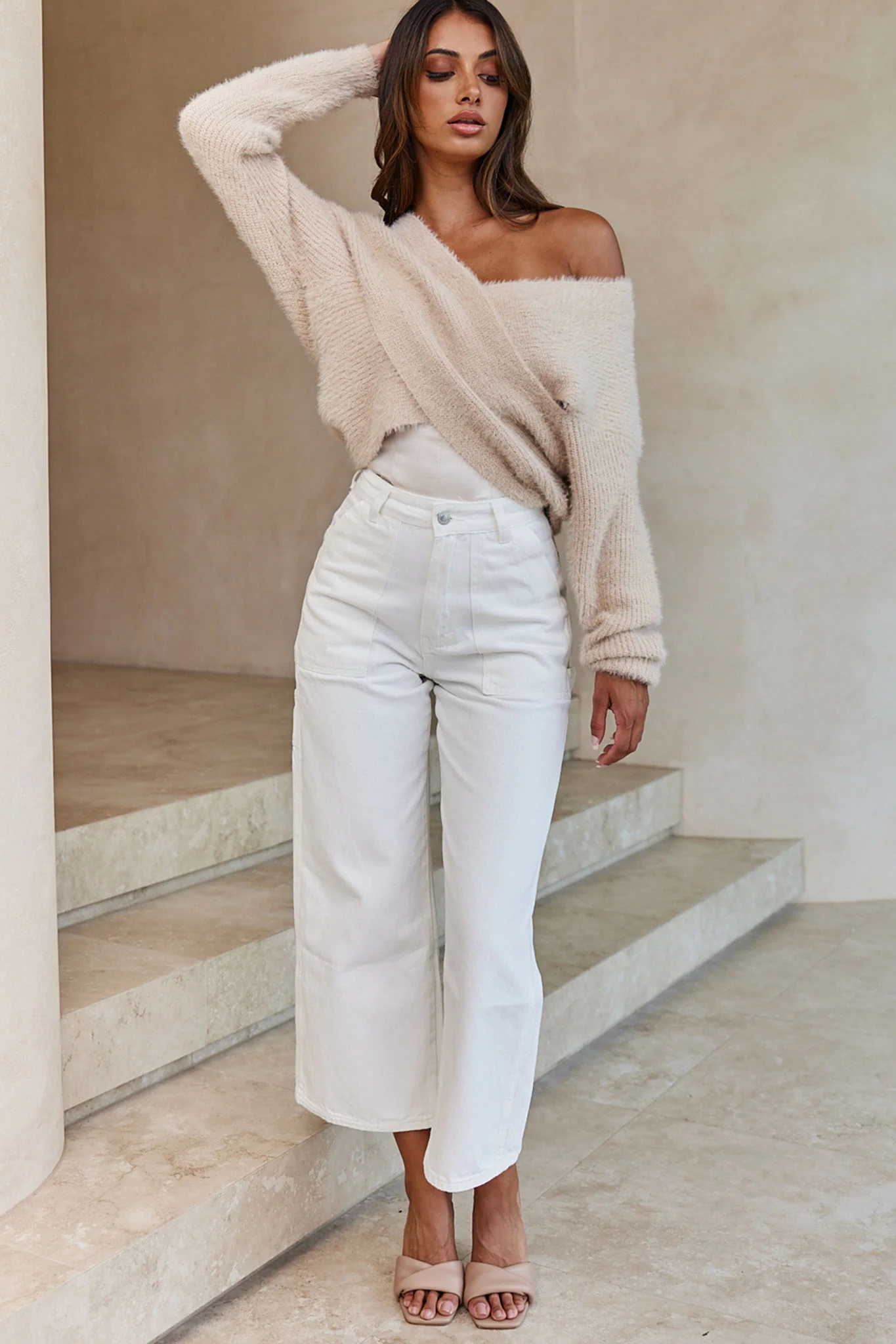 All My Love Long Sleeve Crossover Knit Sweater Stone