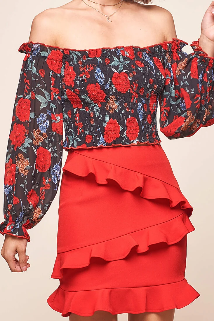 Missy Layered Ruffle Bardot Top Red