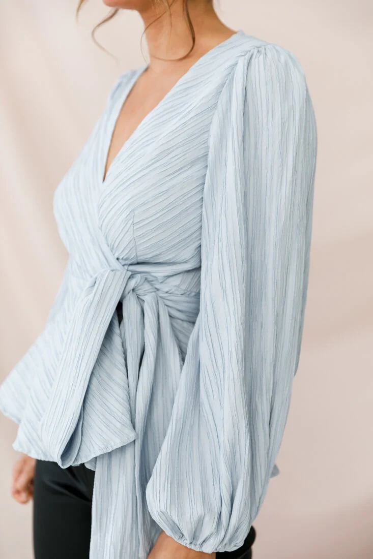 Macy Fit and Flare Wrap Top Blue