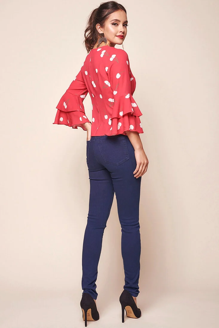 Robbi Cherry on Top Deep V Bell Sleeved Top Red