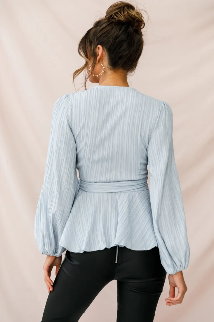 Elaine High Low Balloon Sleeve Top Blue