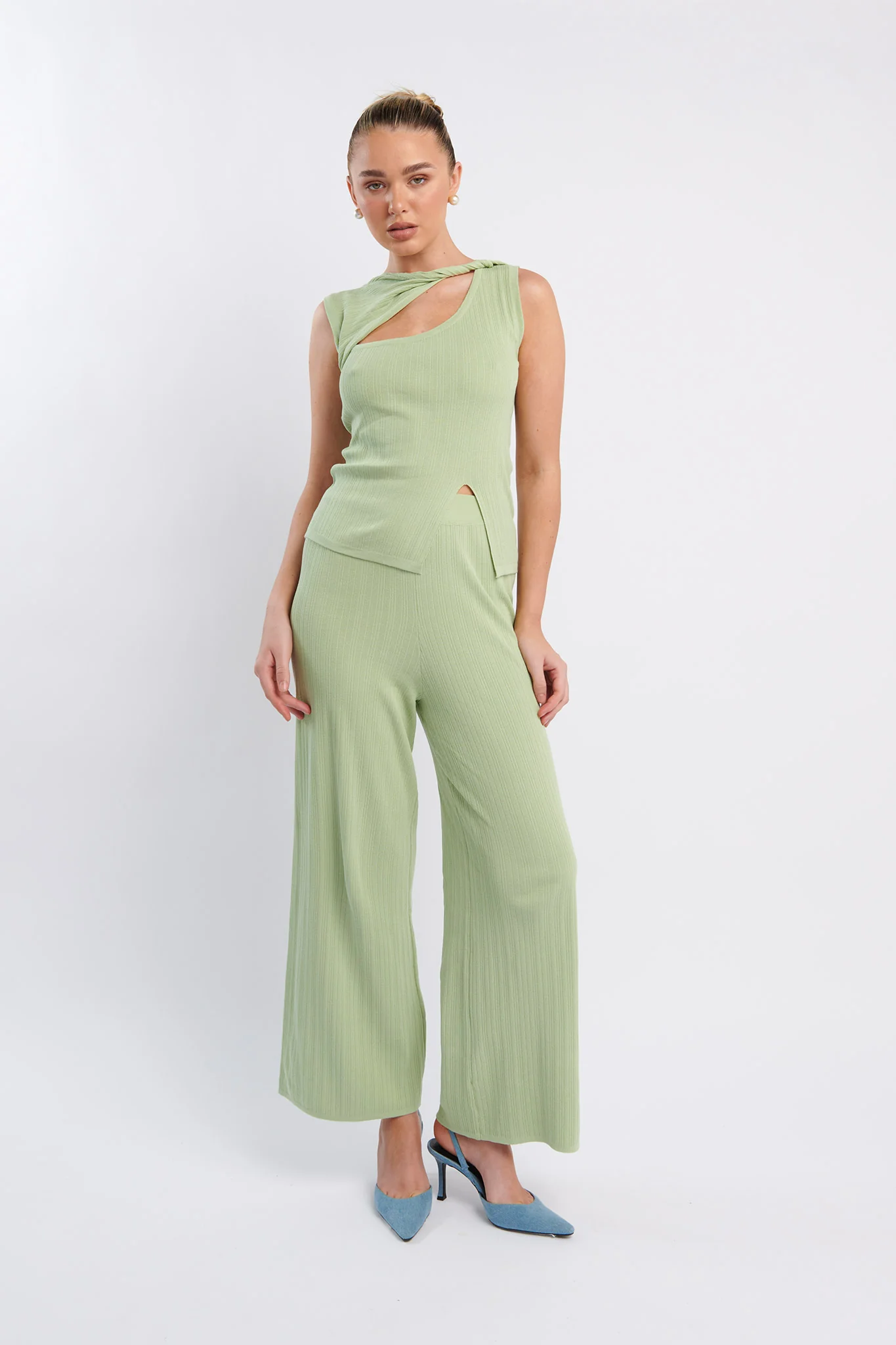 Rossana Twist Neck Sleeveless Keyhole Top Sage