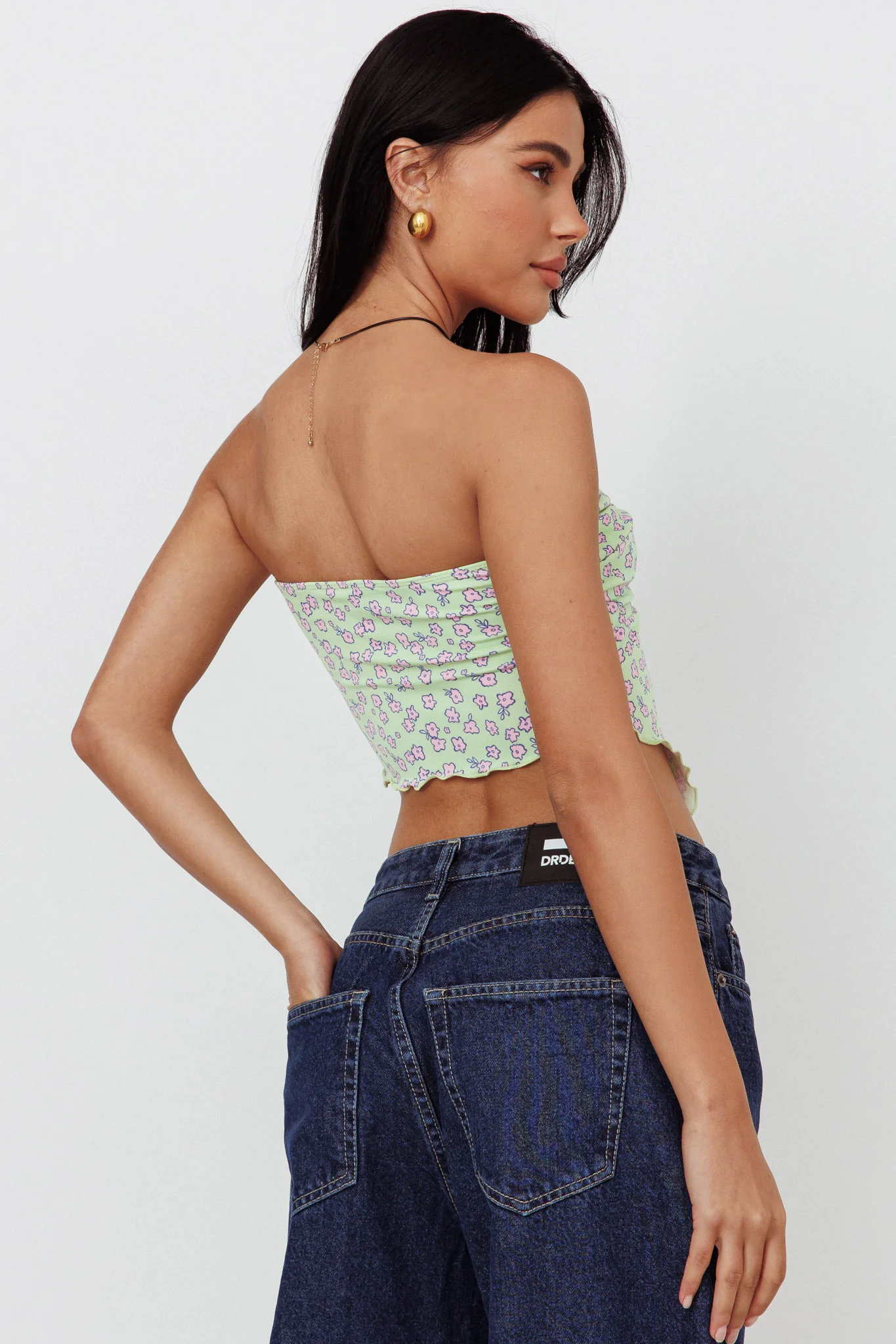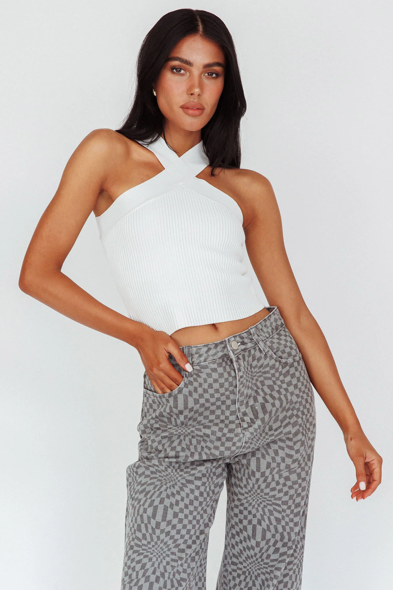 Gracelyn Tied Shoulder Embroidery Crop Top White
