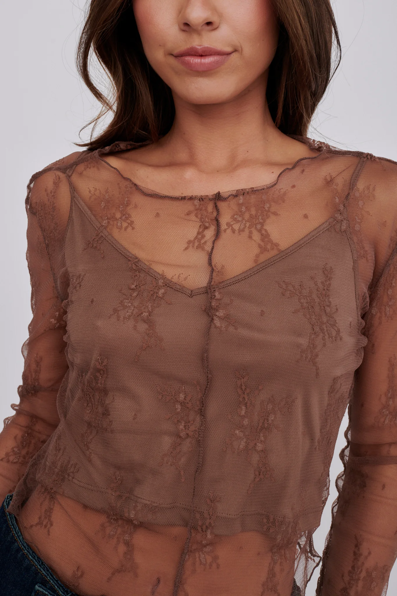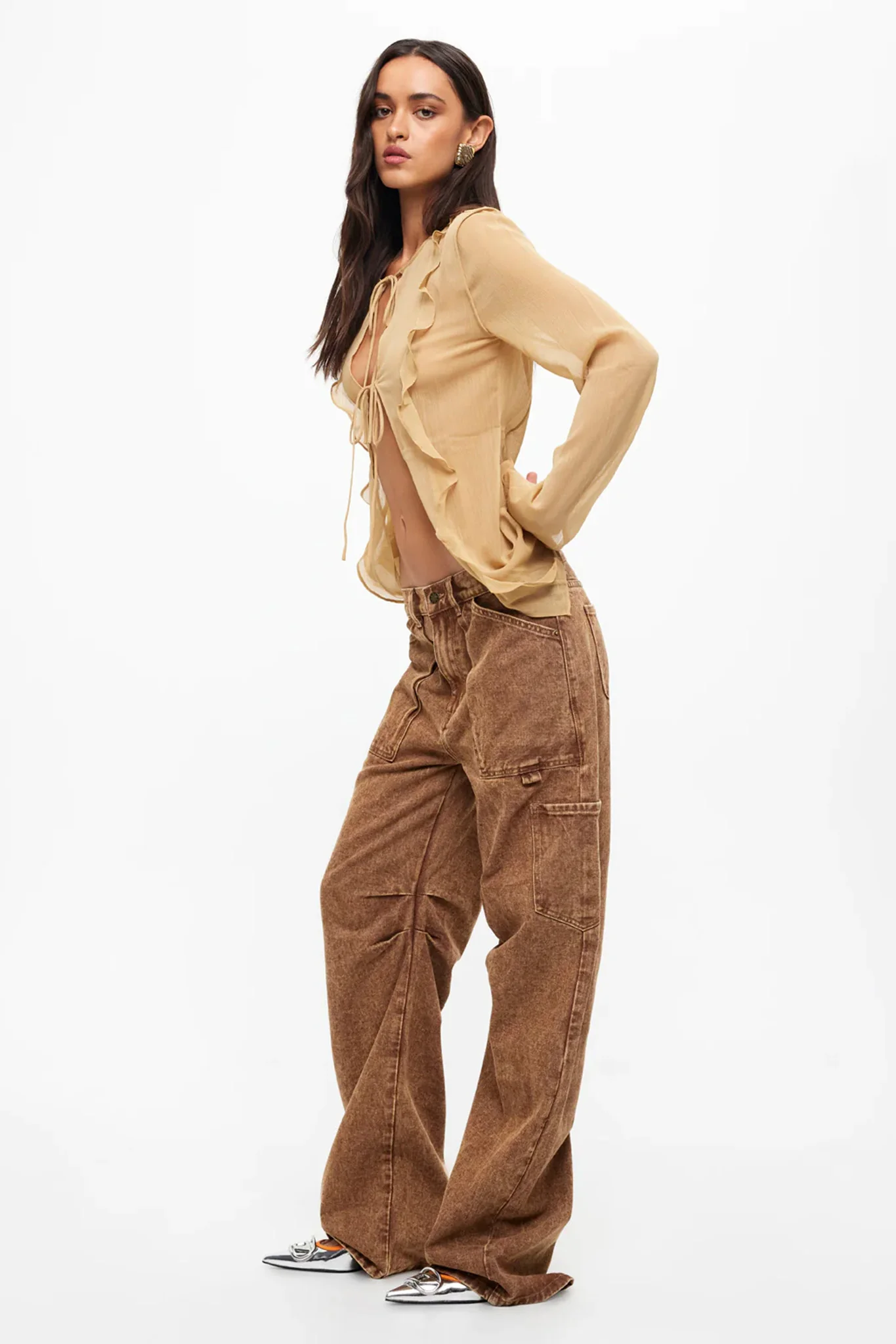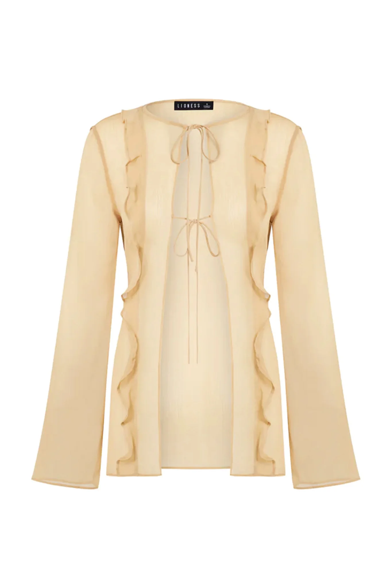 Sincerity Long Sleeve Tie Front Top Print Blue