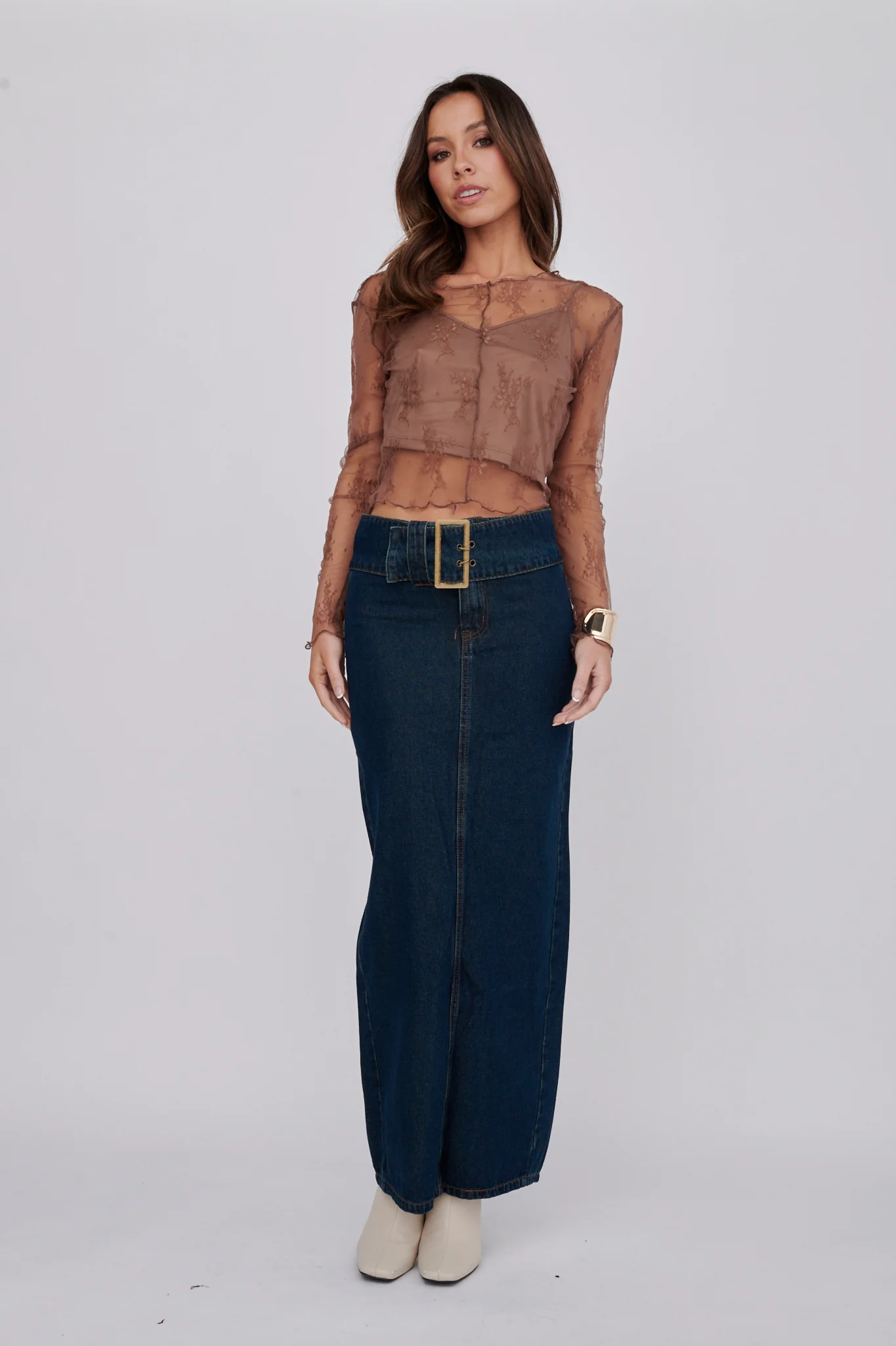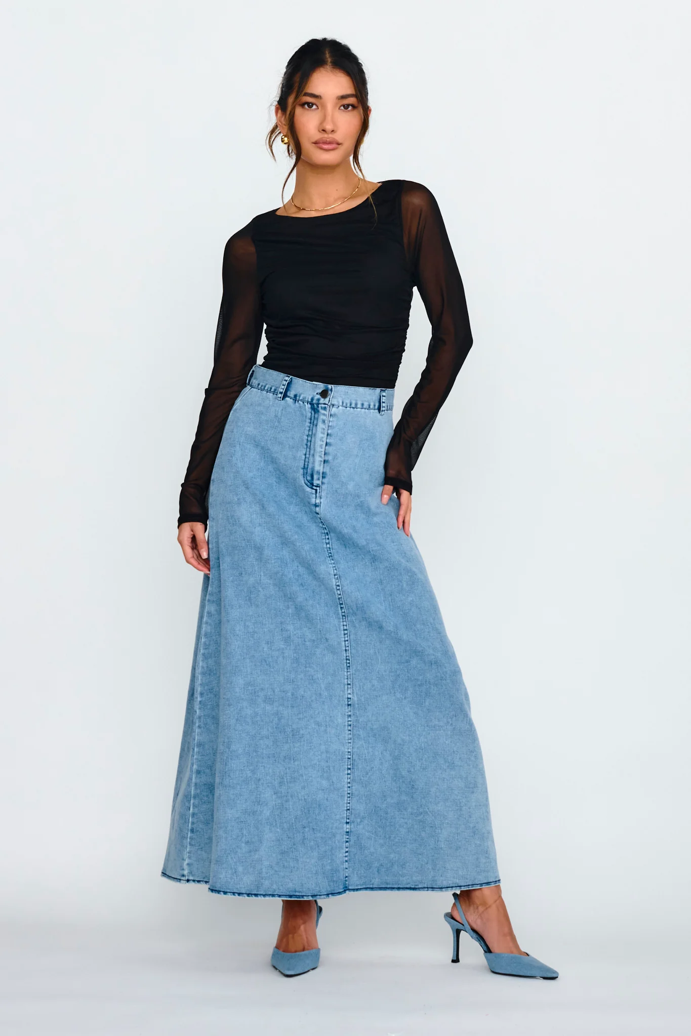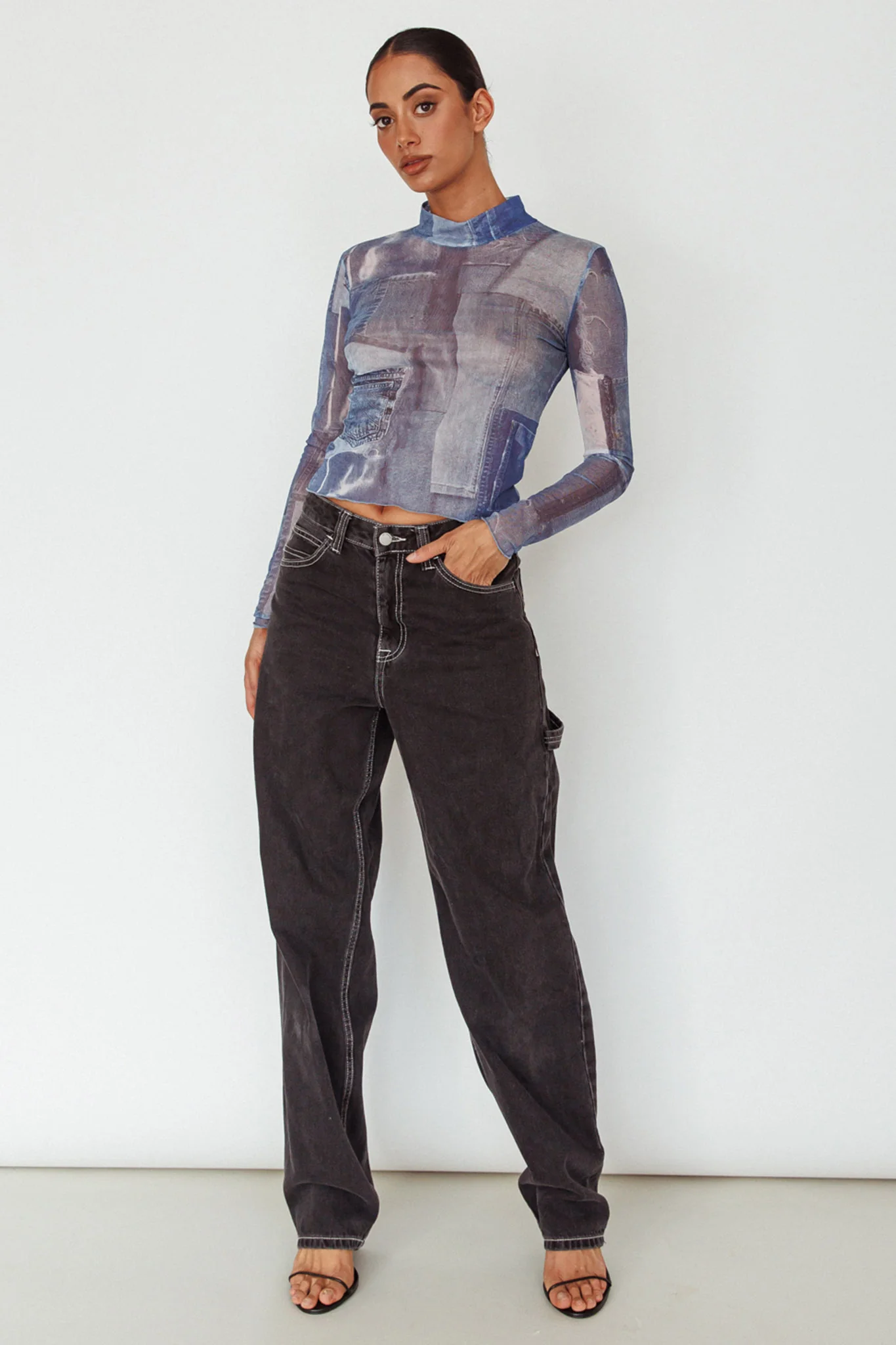 Giza Long Sleeve Mock Neck Top Print Denim Multi