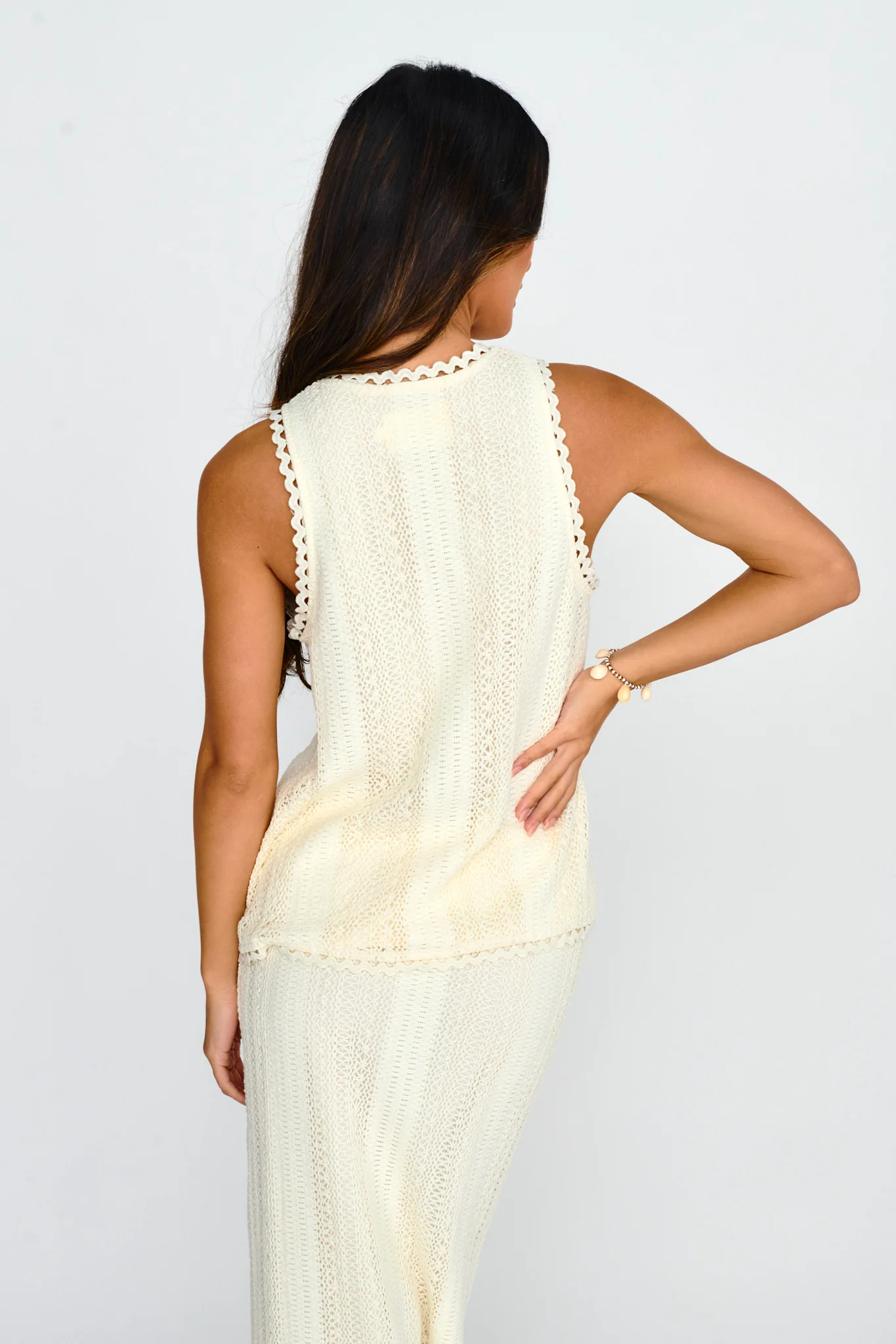 Ninevah Sleeveless Tied Lace Top Beige