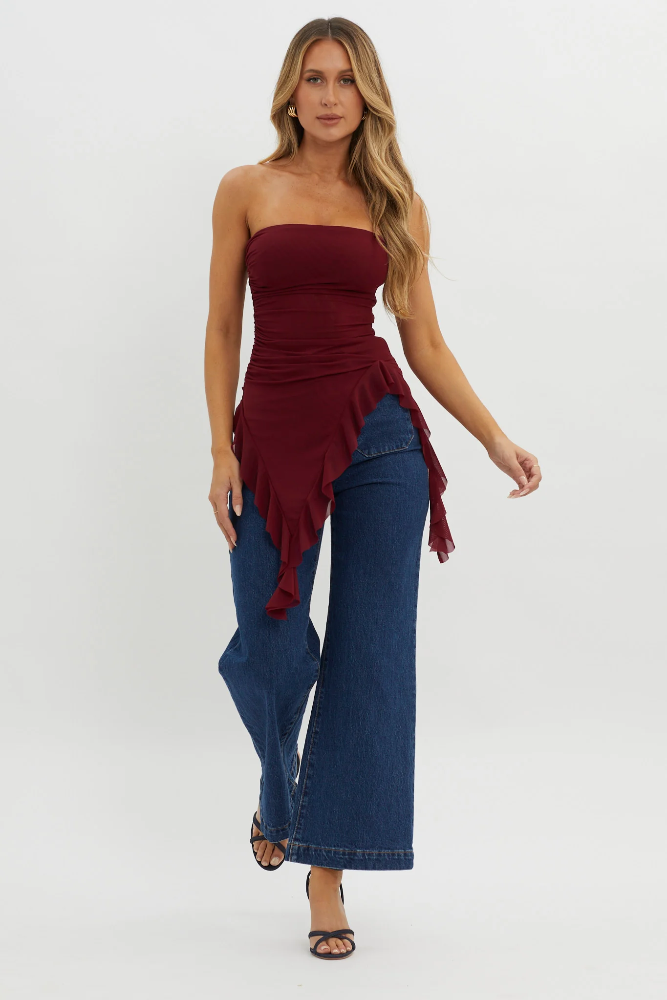 After Party Ruffle Trim Top Sangria