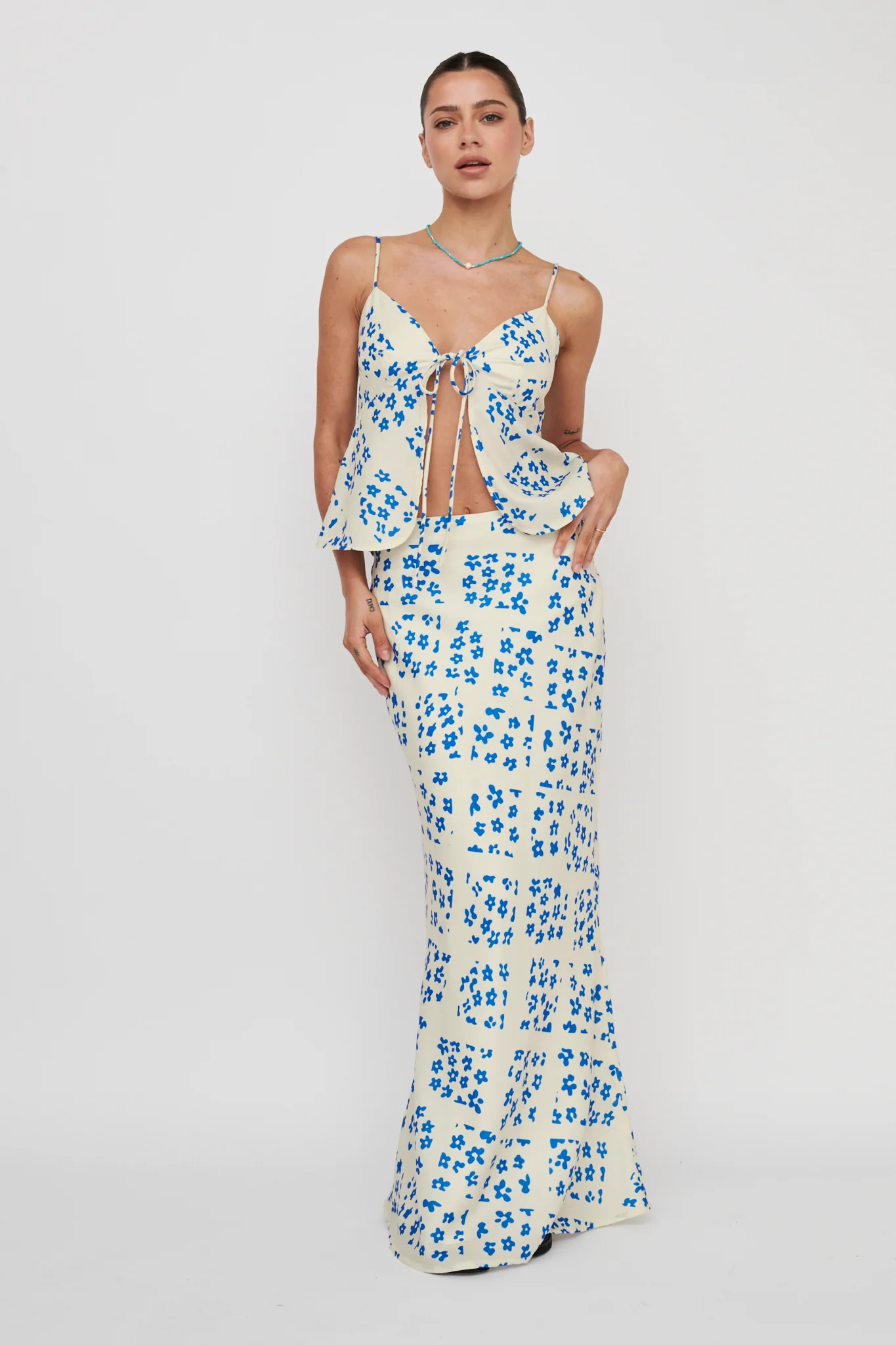 Tammi Tied Back Crop Top Print Blush