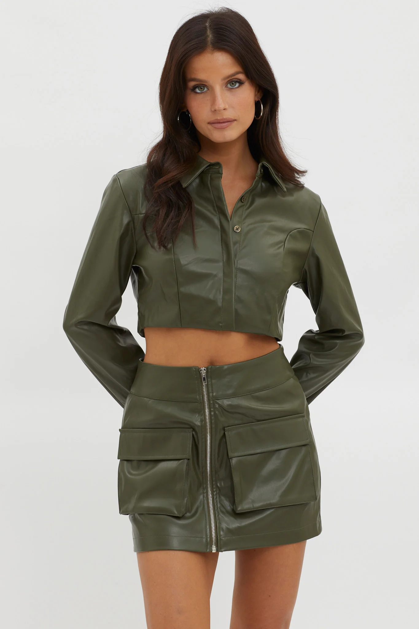 Fallen Angel Faux Leather Crop Top Olive