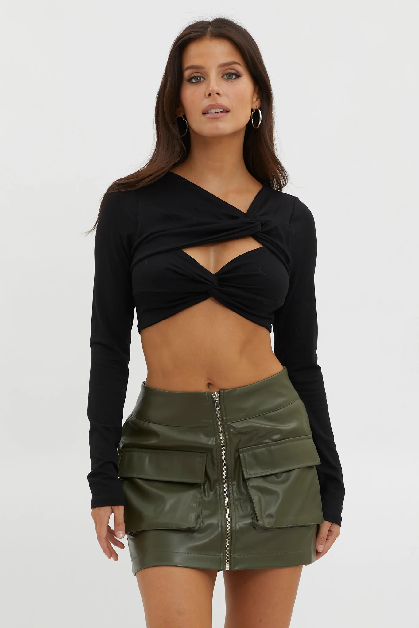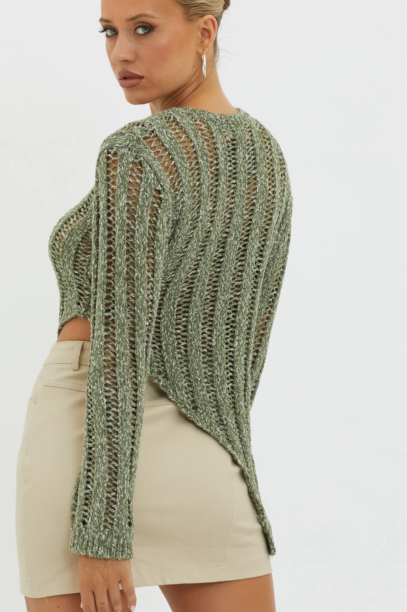 Evergreen Asymmetrical Hem Ribbed Knit Top Olive