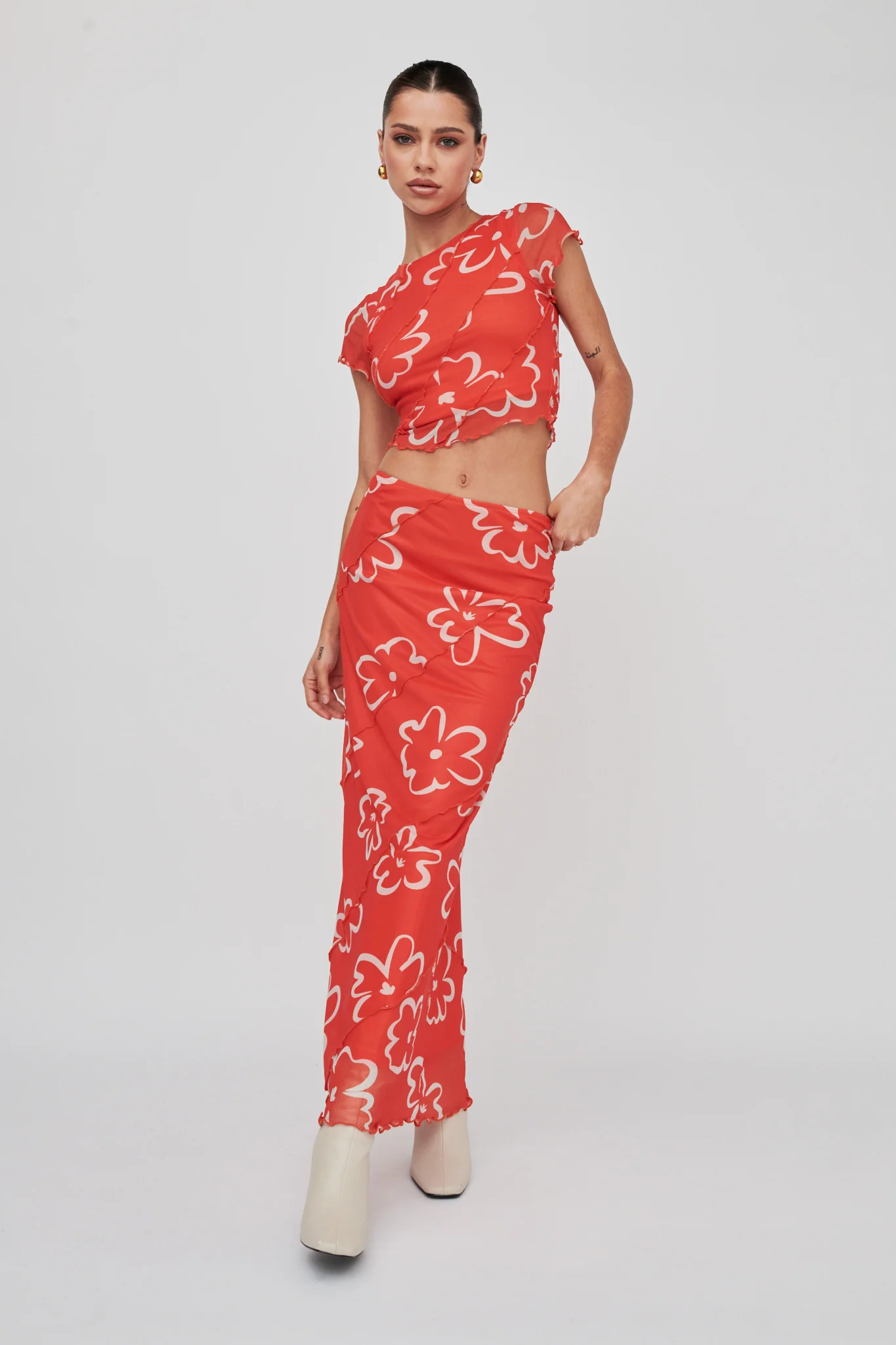 She's Unstoppable Ruffle Trim Mesh Top Pewter Grey