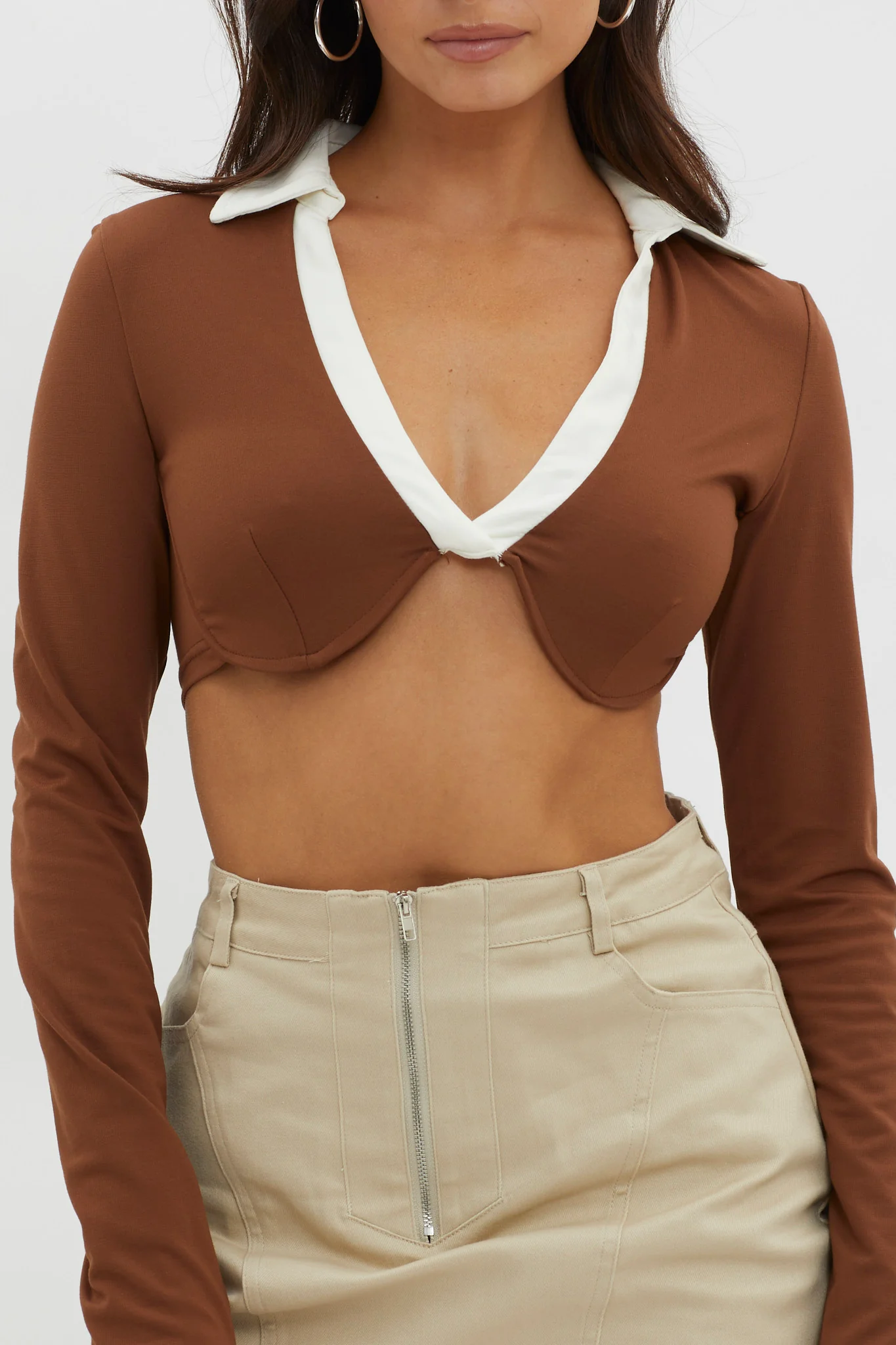 Mic Drop Collared Crop Top Chocolate