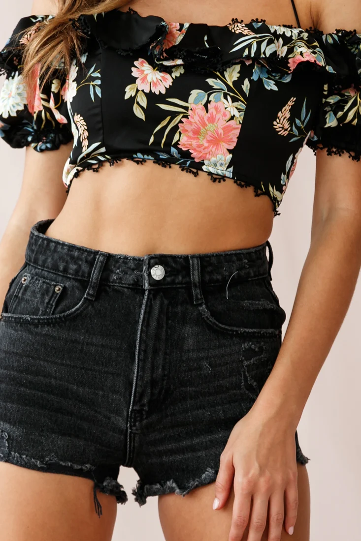 Thea Ruffle Crop Top Black