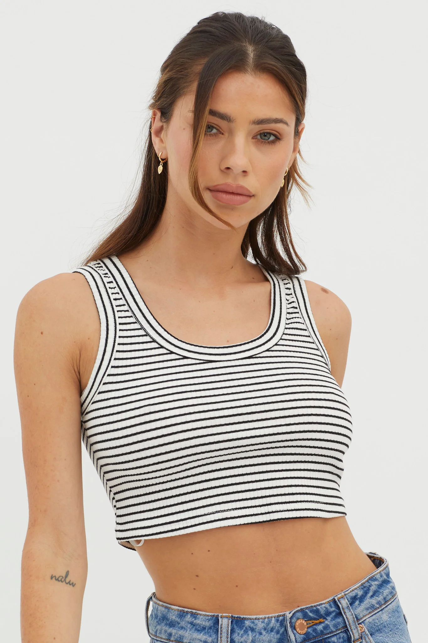 Made It Ribbed Knit Top Stripe Cream