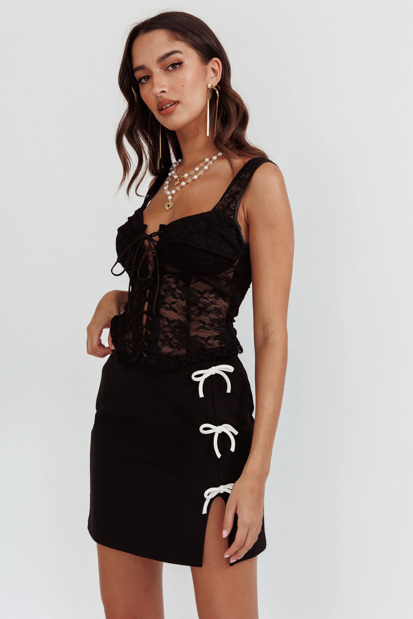 Sheera Lace-Up Corset Top Lace Black