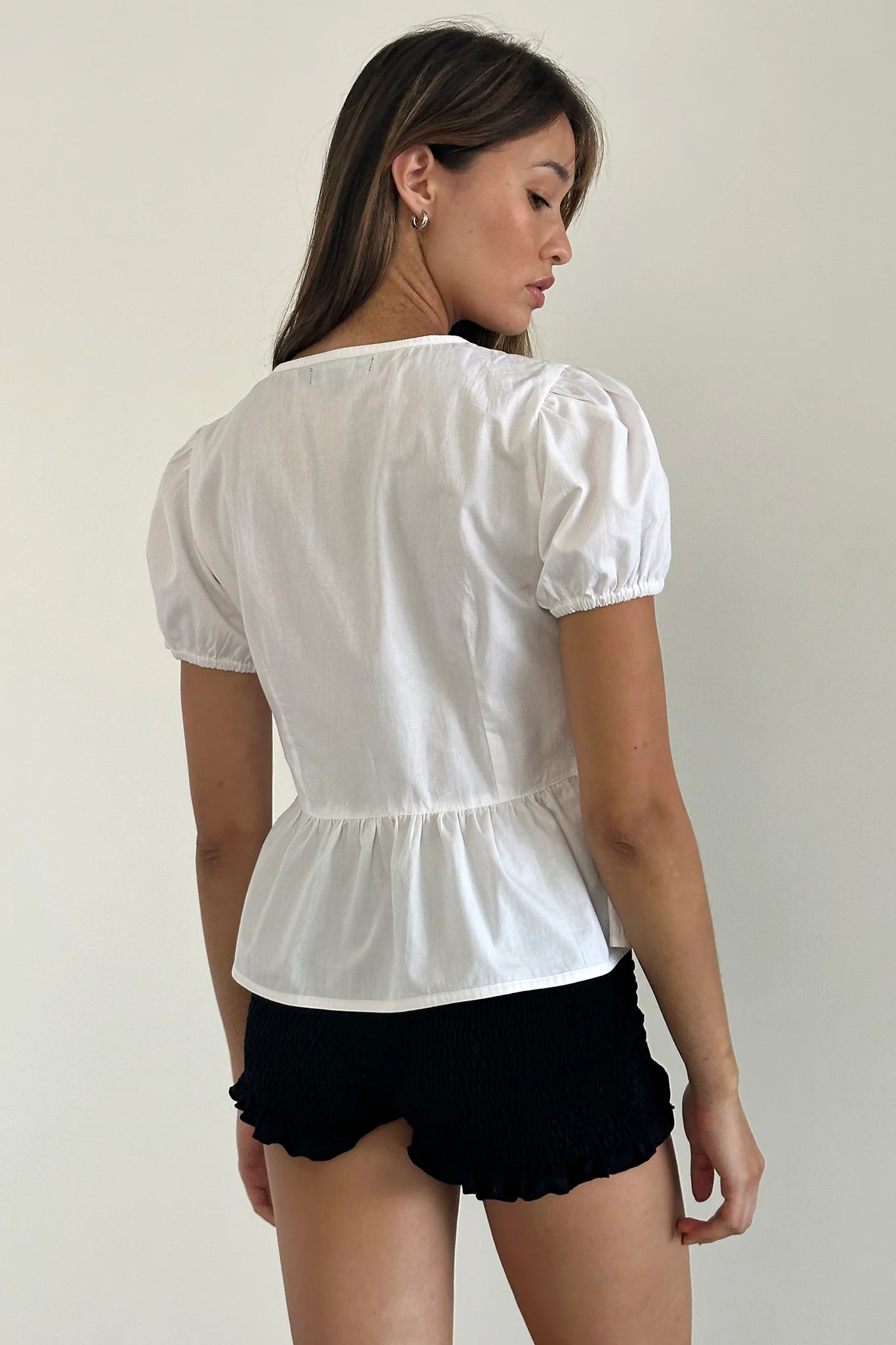 Scandi Puff Sleeve Tie Front Top White