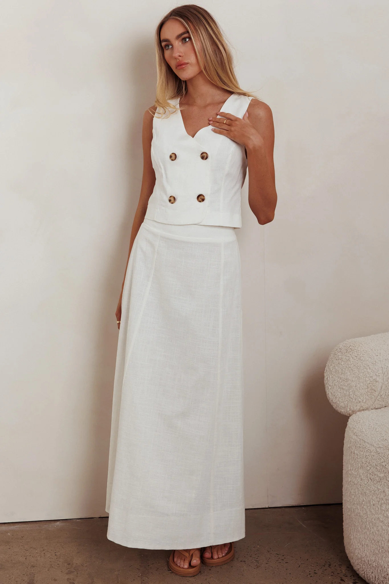 Payday Sleeveless Double Breasted Vest Top Off White