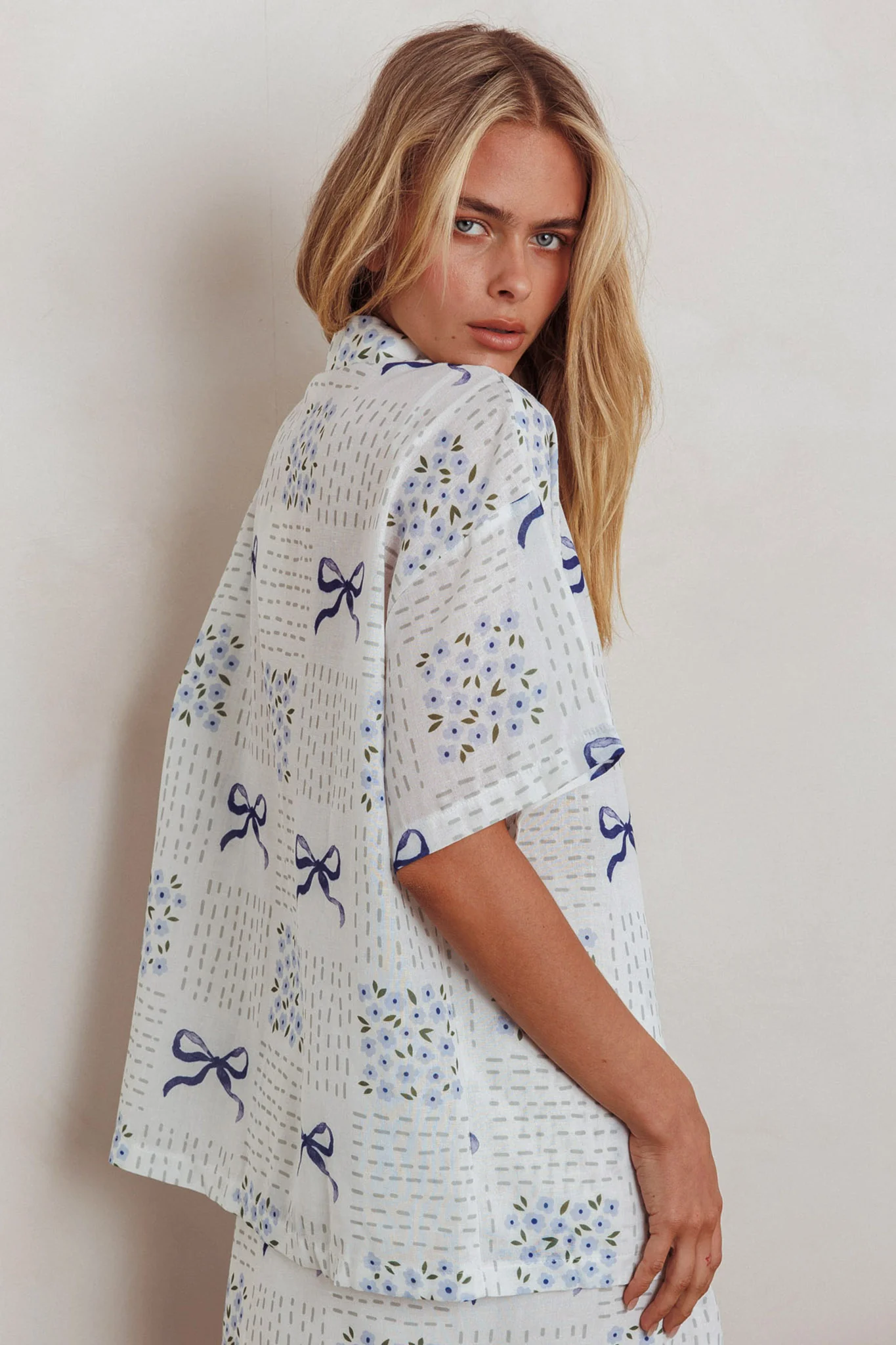 Ithaca Short Sleeve Button Shirt Bow Print Blue