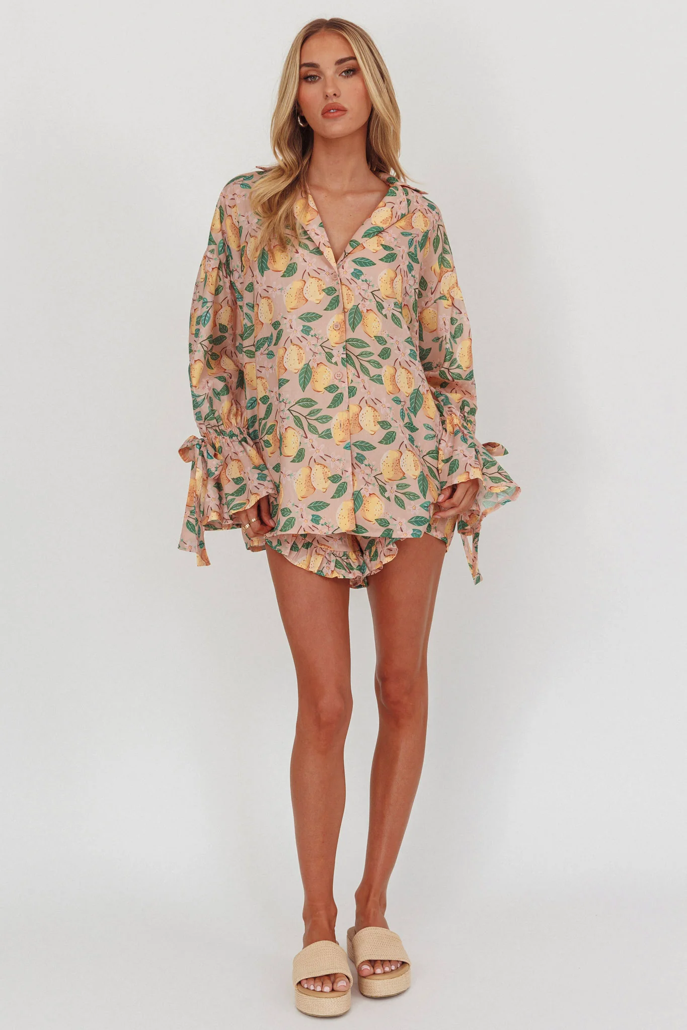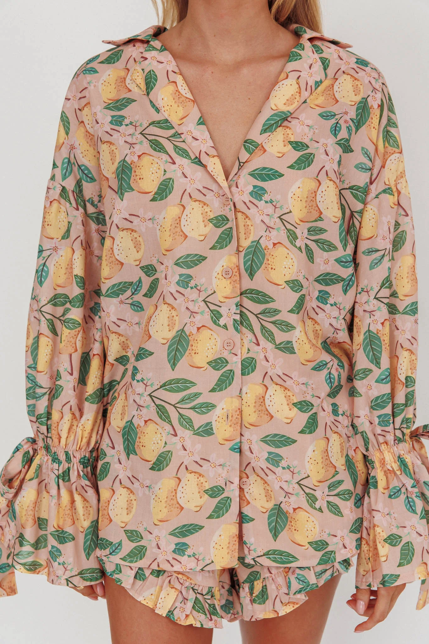 Telling Secrets Tied Cuff Top Lemon