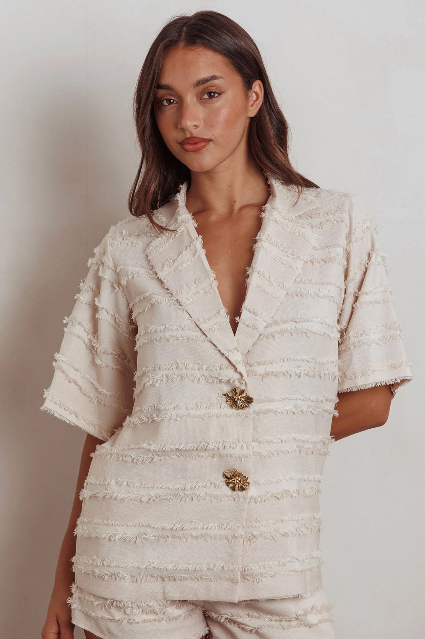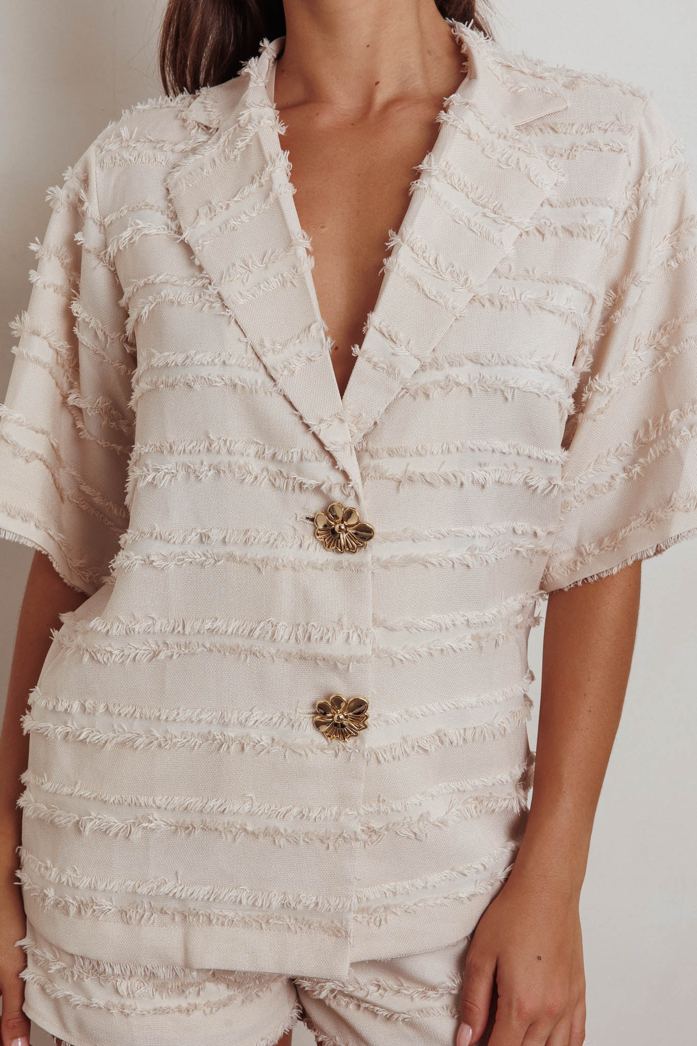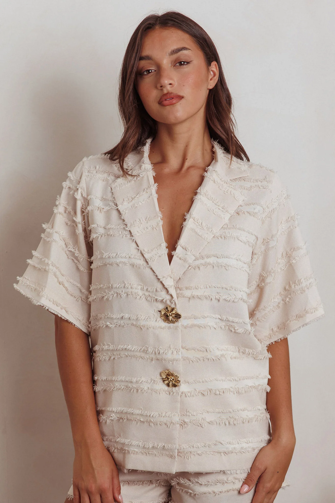 Reed Raw Edge Trim Collared Top Cream