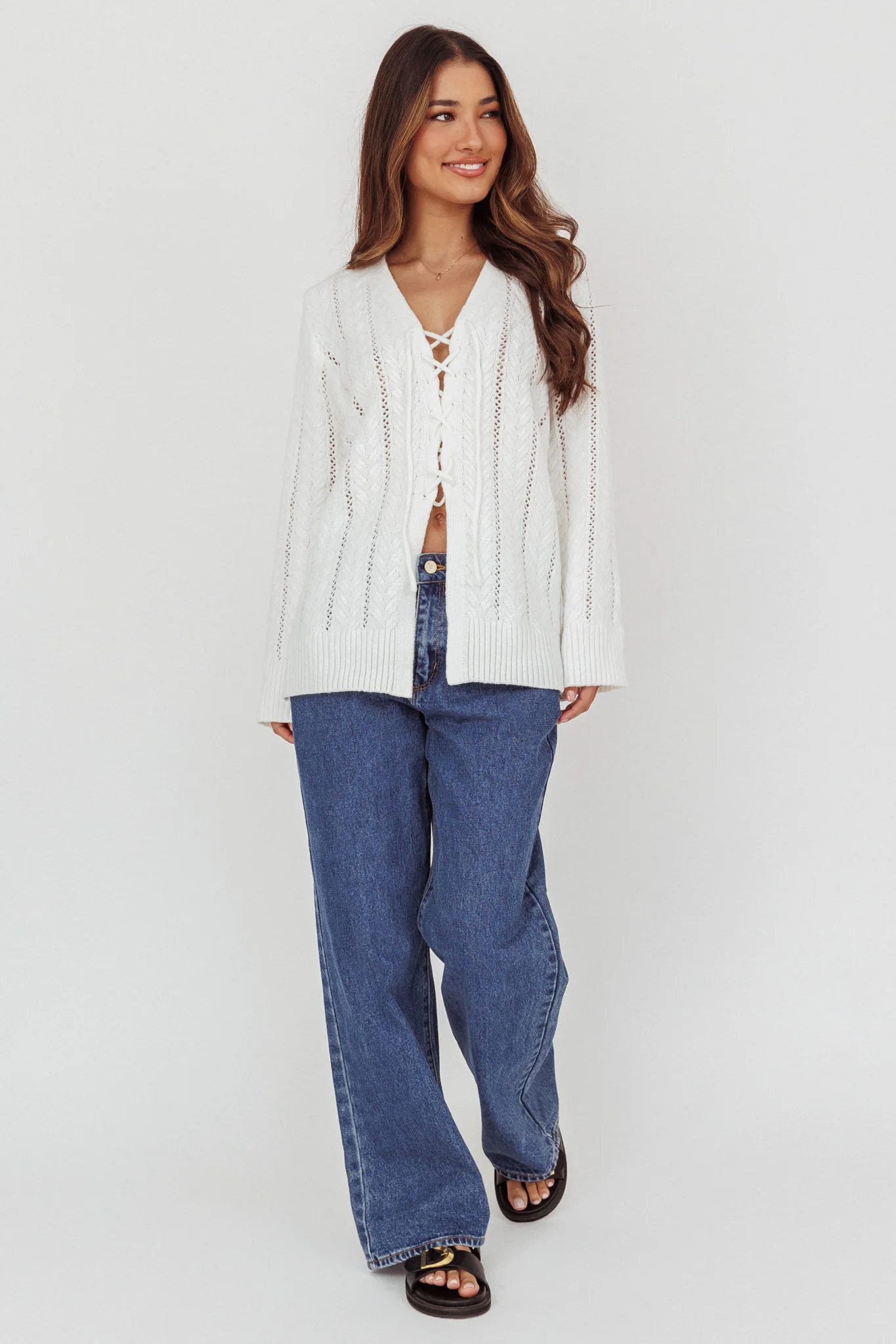 Seattle Lace-Up Front Knit Top White