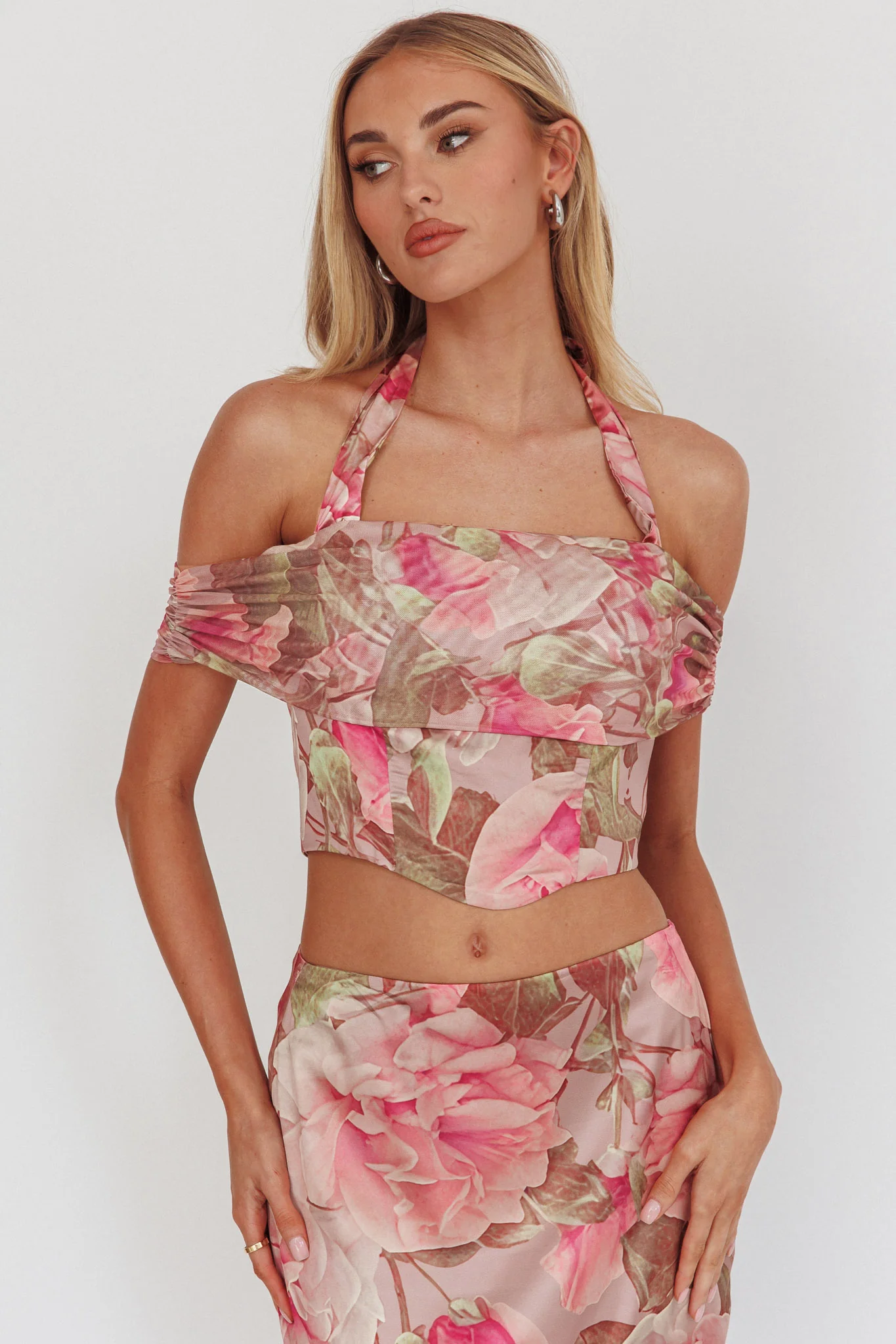 Sunset High Halterneck Crop Top Floral Blush