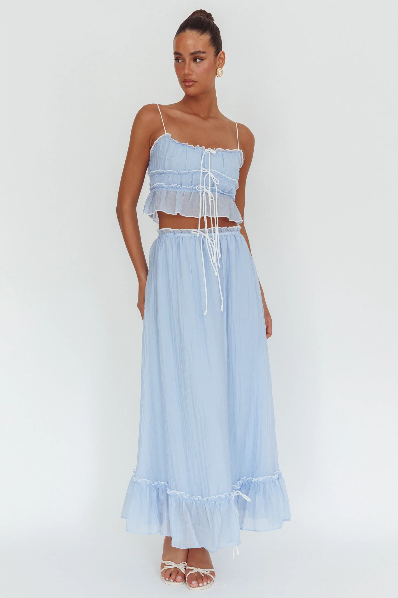 Maidens Tie Detail Overlock Top Cloud Blue