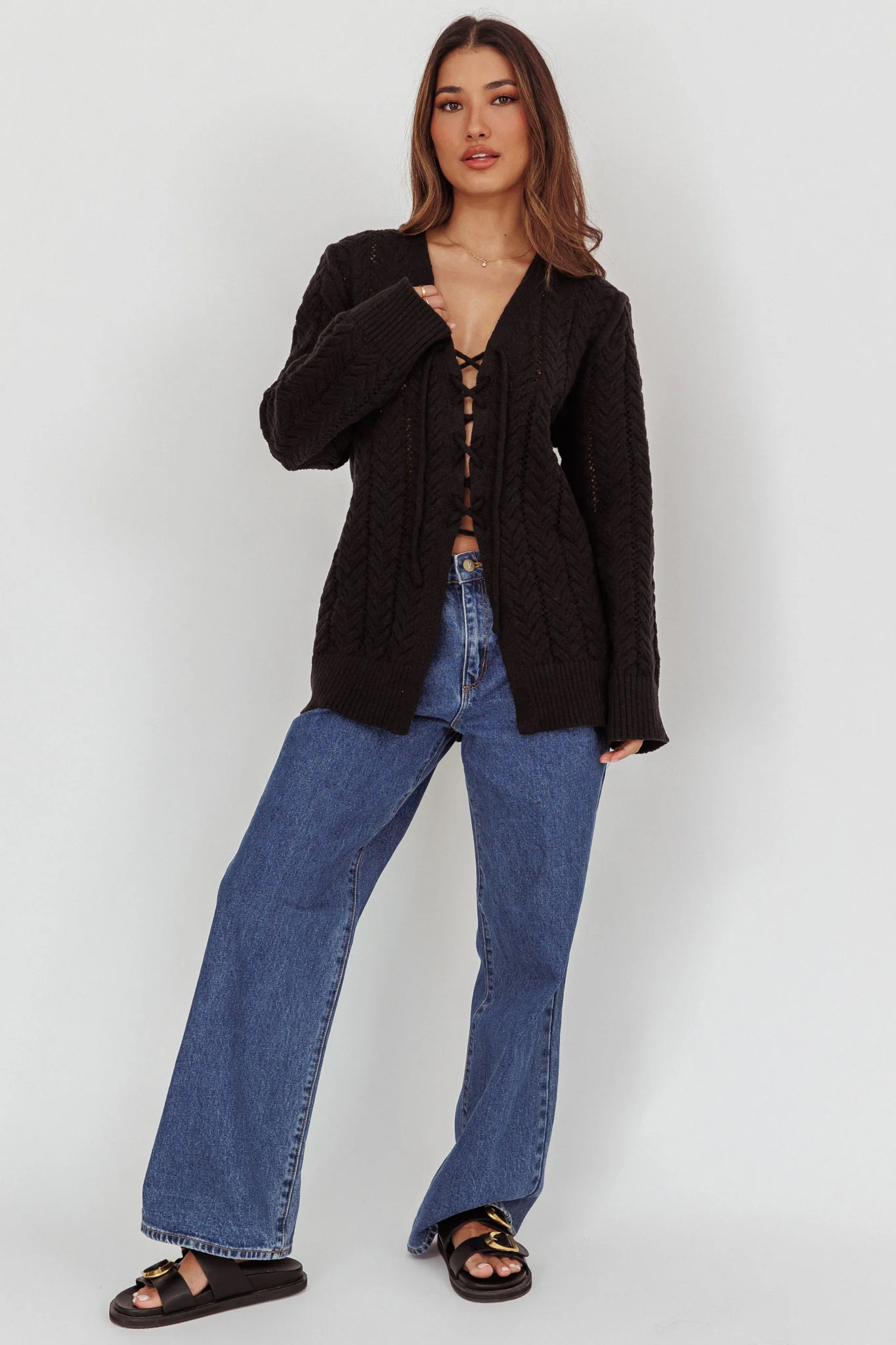 Seattle Lace-Up Front Knit Top Black