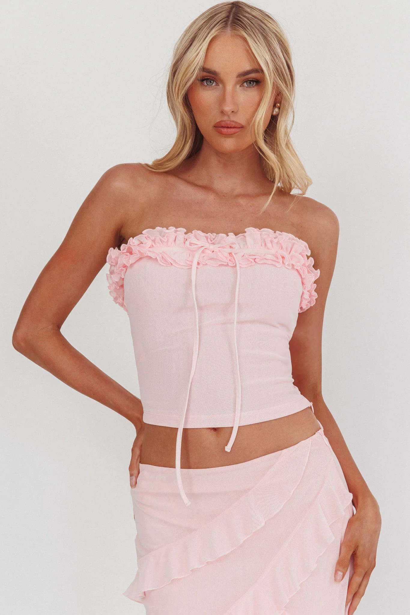 Frosted Sugar Frill Strapless Top Pink