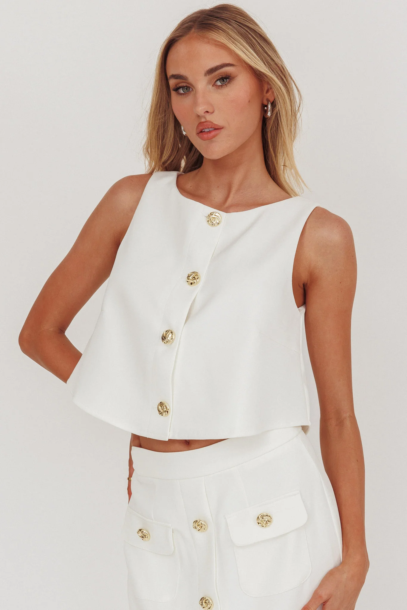 Bondi Sunset Front Button Top White