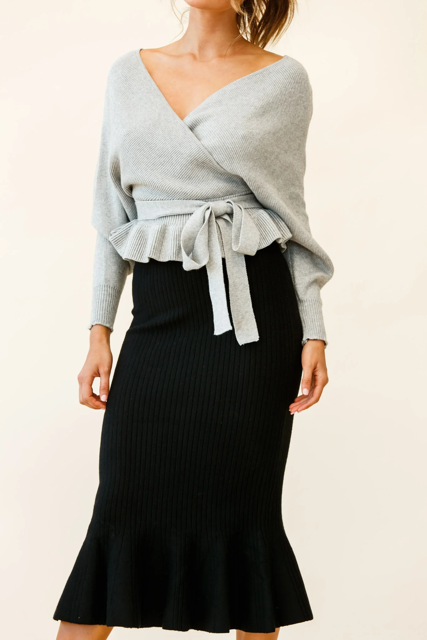 Amara Long Sleeve Knit Top Grey
