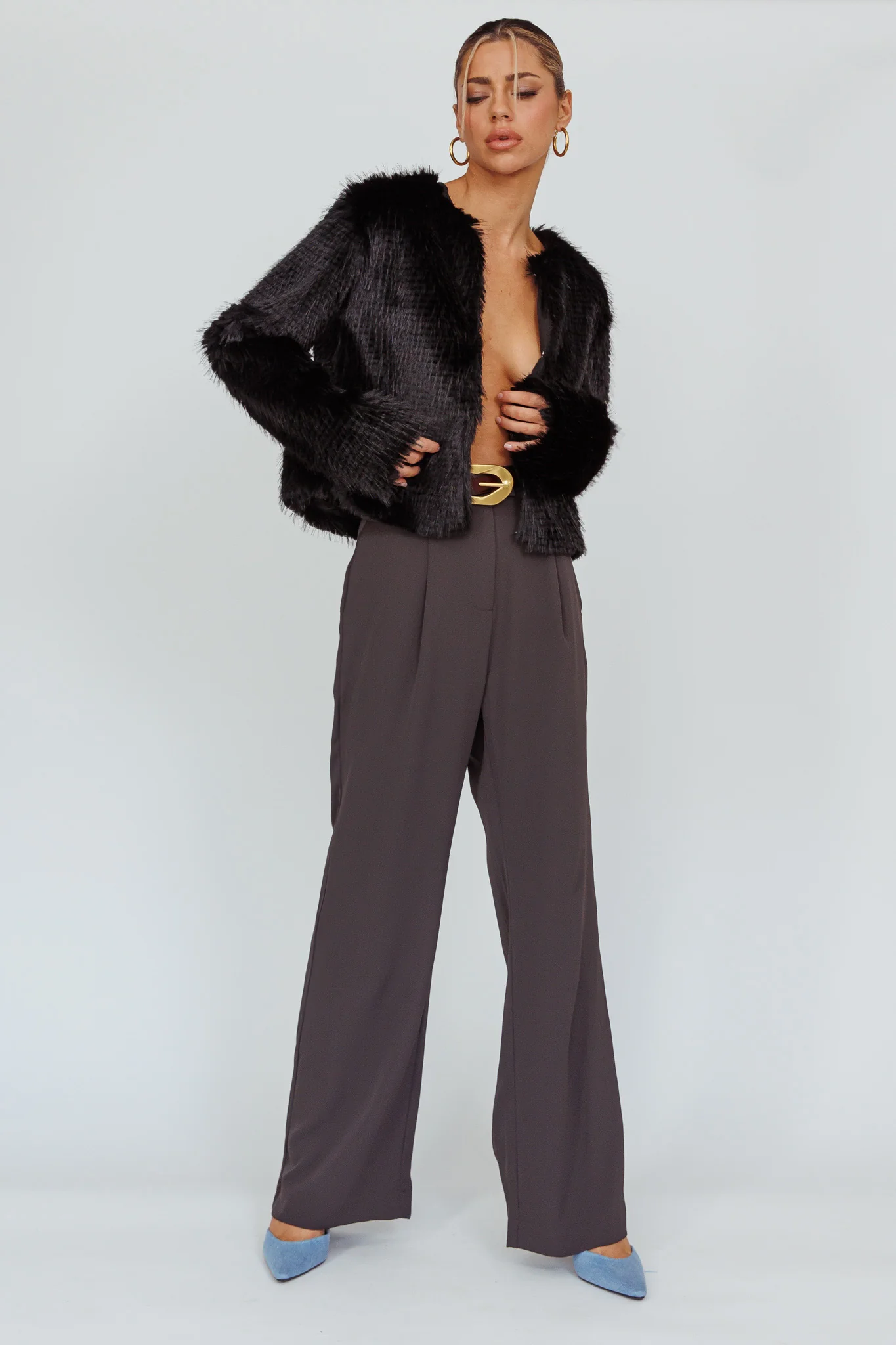 London Day Faux Fur Jacket Black
