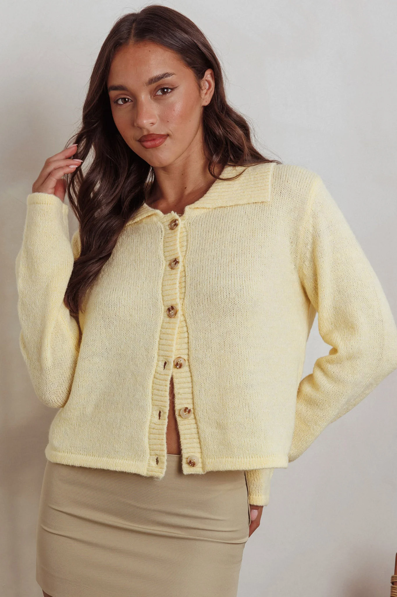 Margaret Button-Up Knit Cardigan Butter