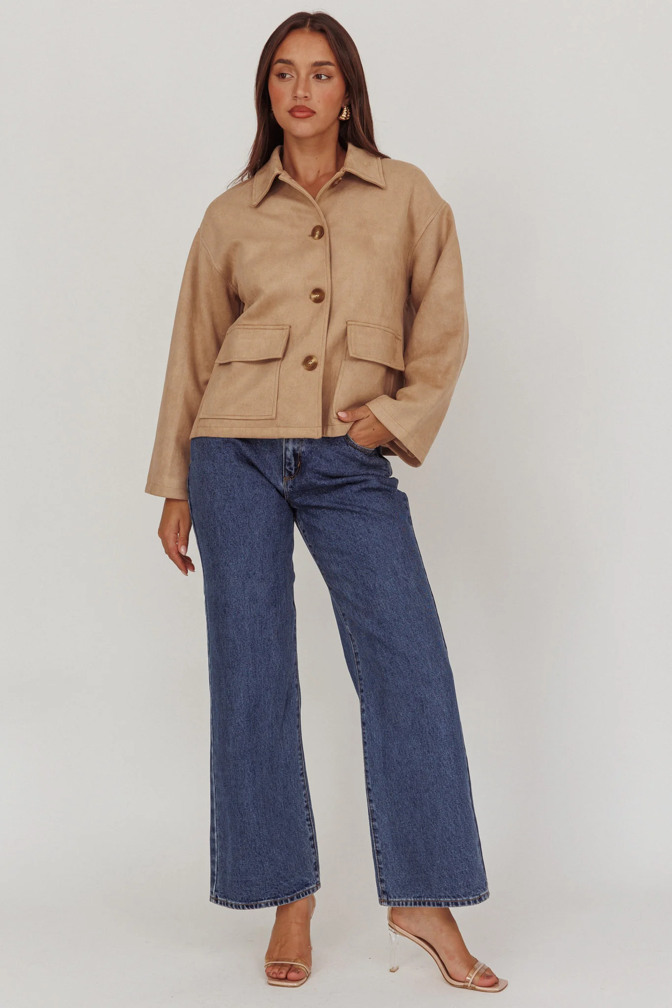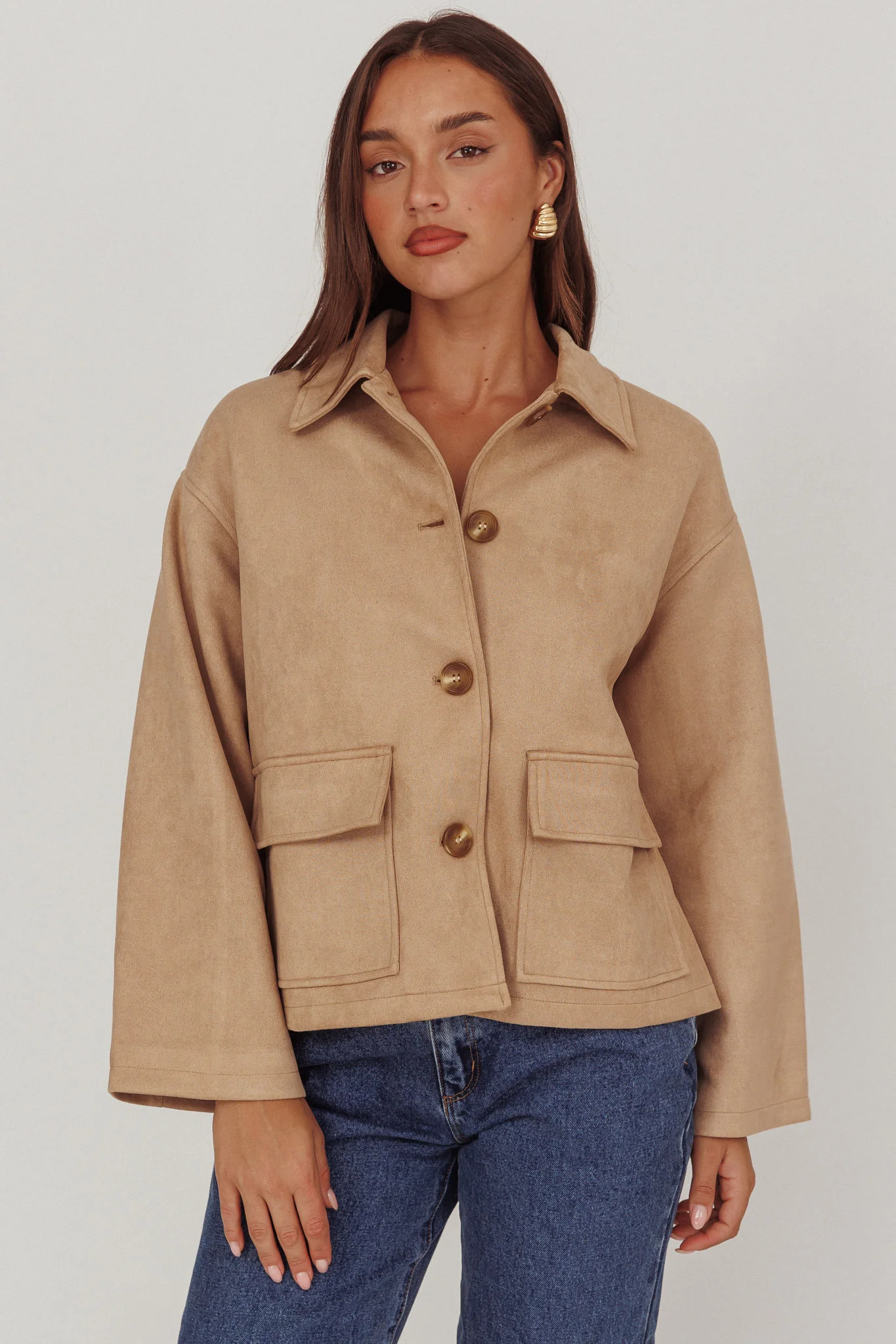 Everett Front Pocket Button Jacket Beige
