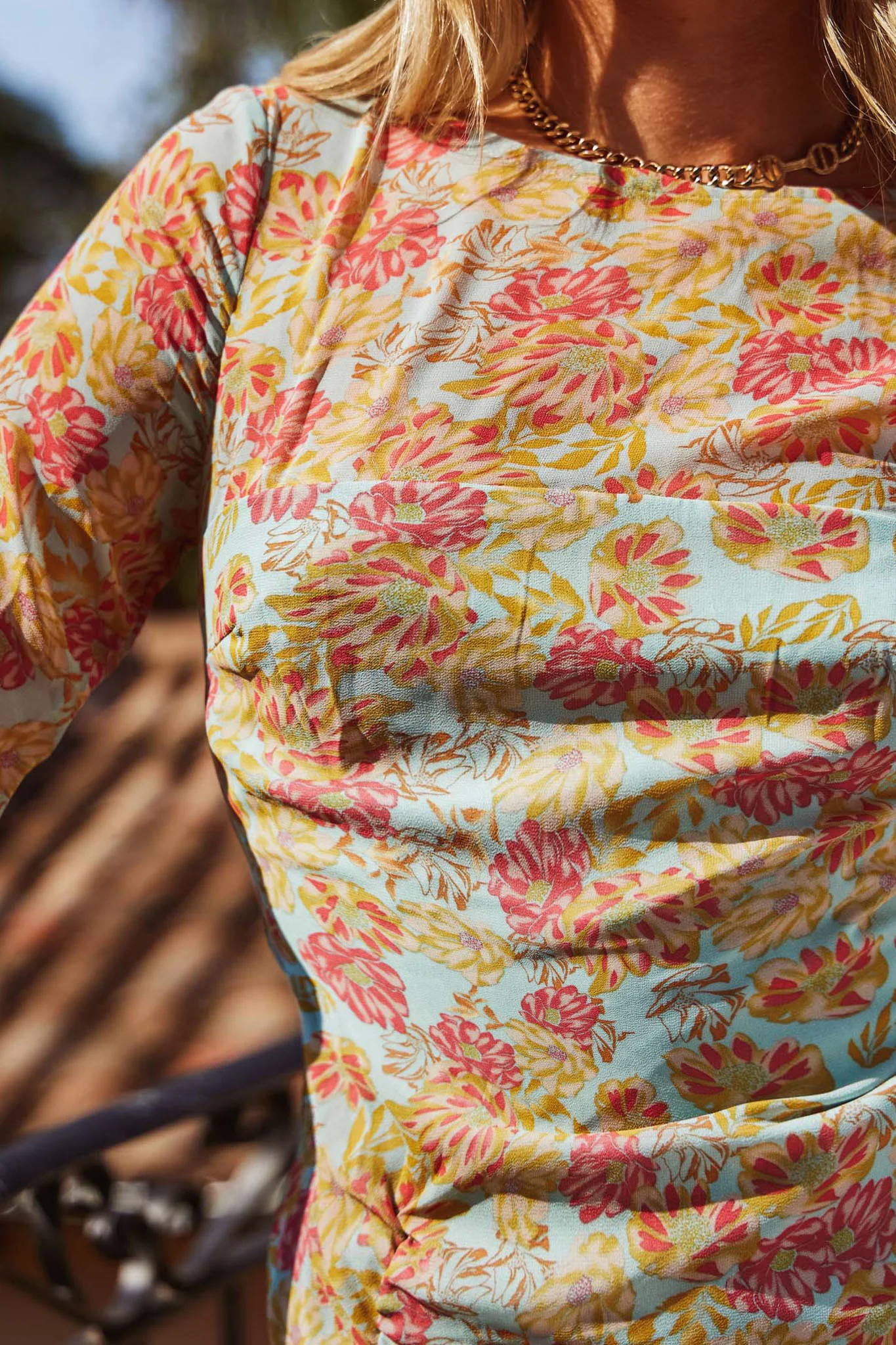 Make Memories Balloon Sleeve Molded Bust Dress Vintage Floral Beige