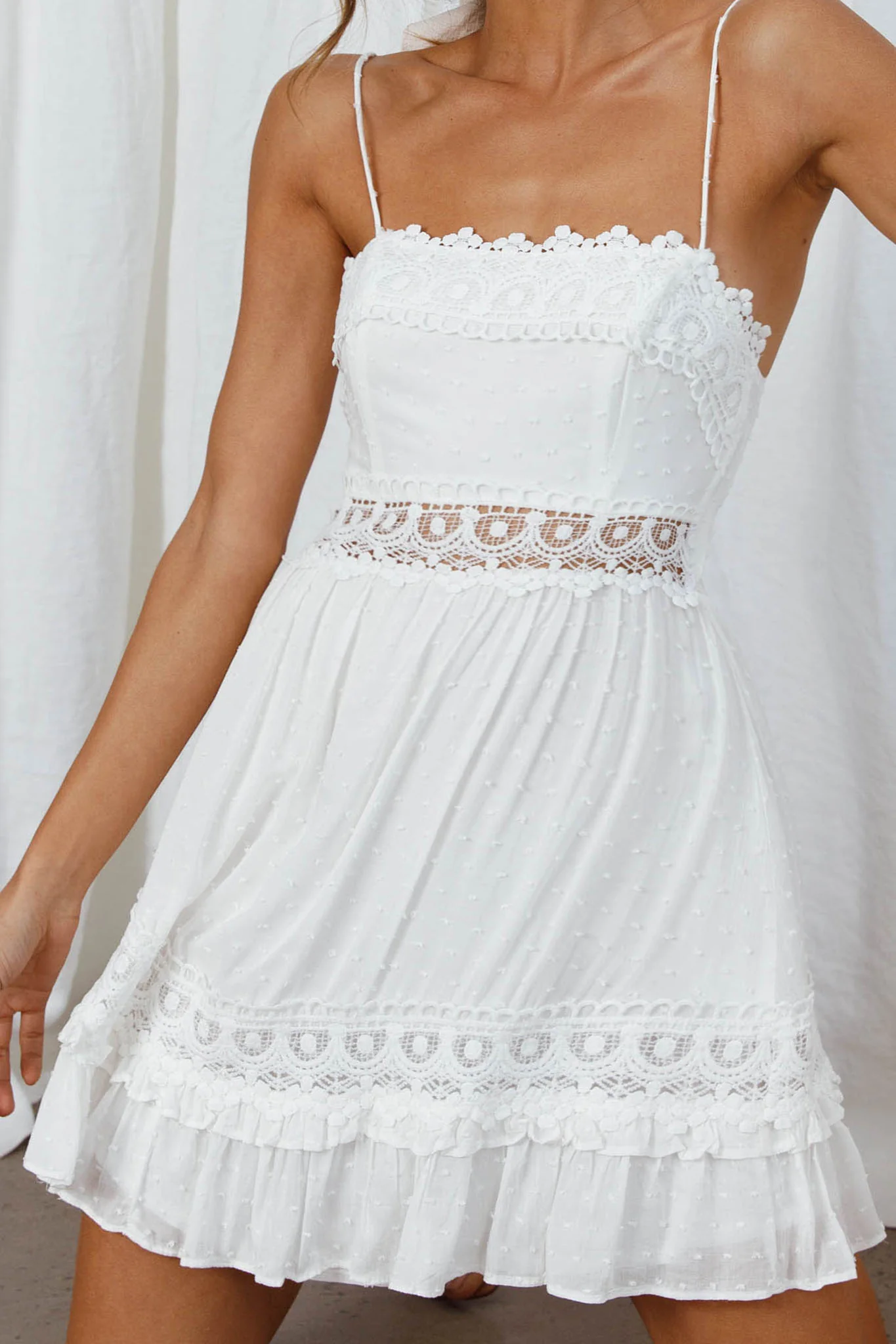 La La Land Twisted Bust & Back Paisley Lace Mini Dress White