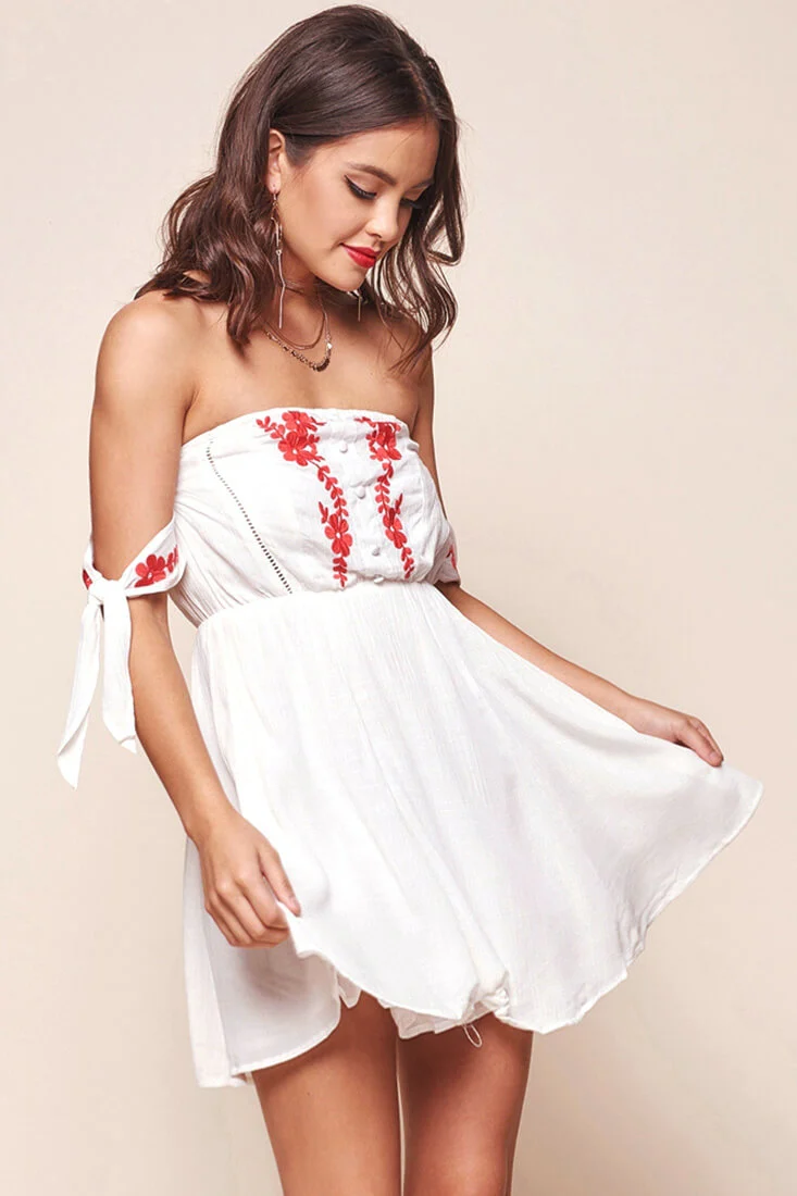 Shaana Embroidered V-Neck Mini Dress White