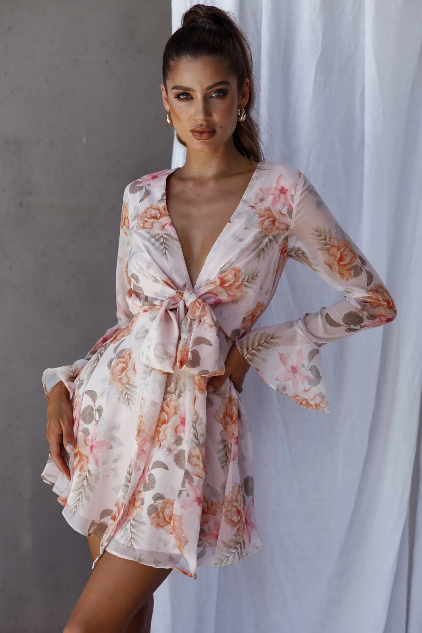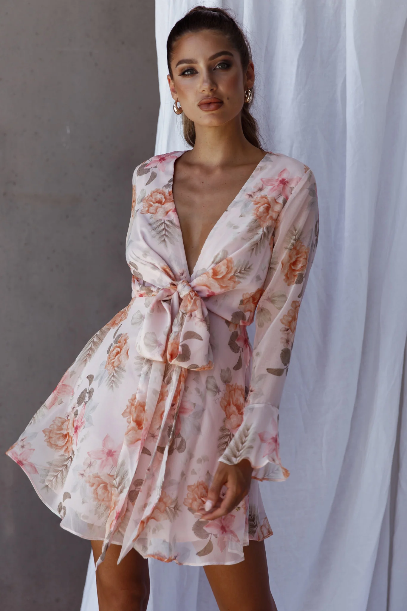 Lola Ruffle Shoulder Ruched Dress Floral Print Pink