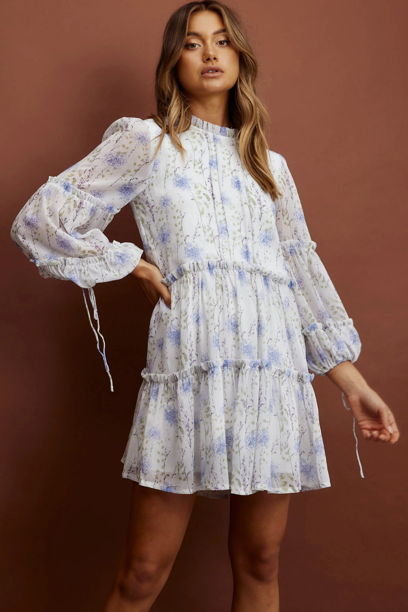 Beatrix High Neck Balloon Sleeve Dress Floral White