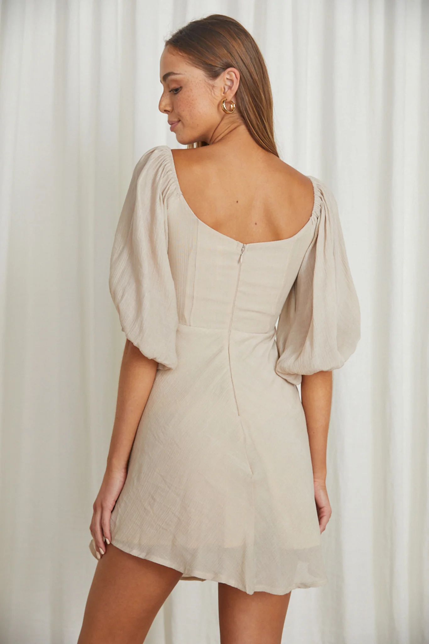 Dayanara Off-Shoulder Puff Sleeve Dress Mocha