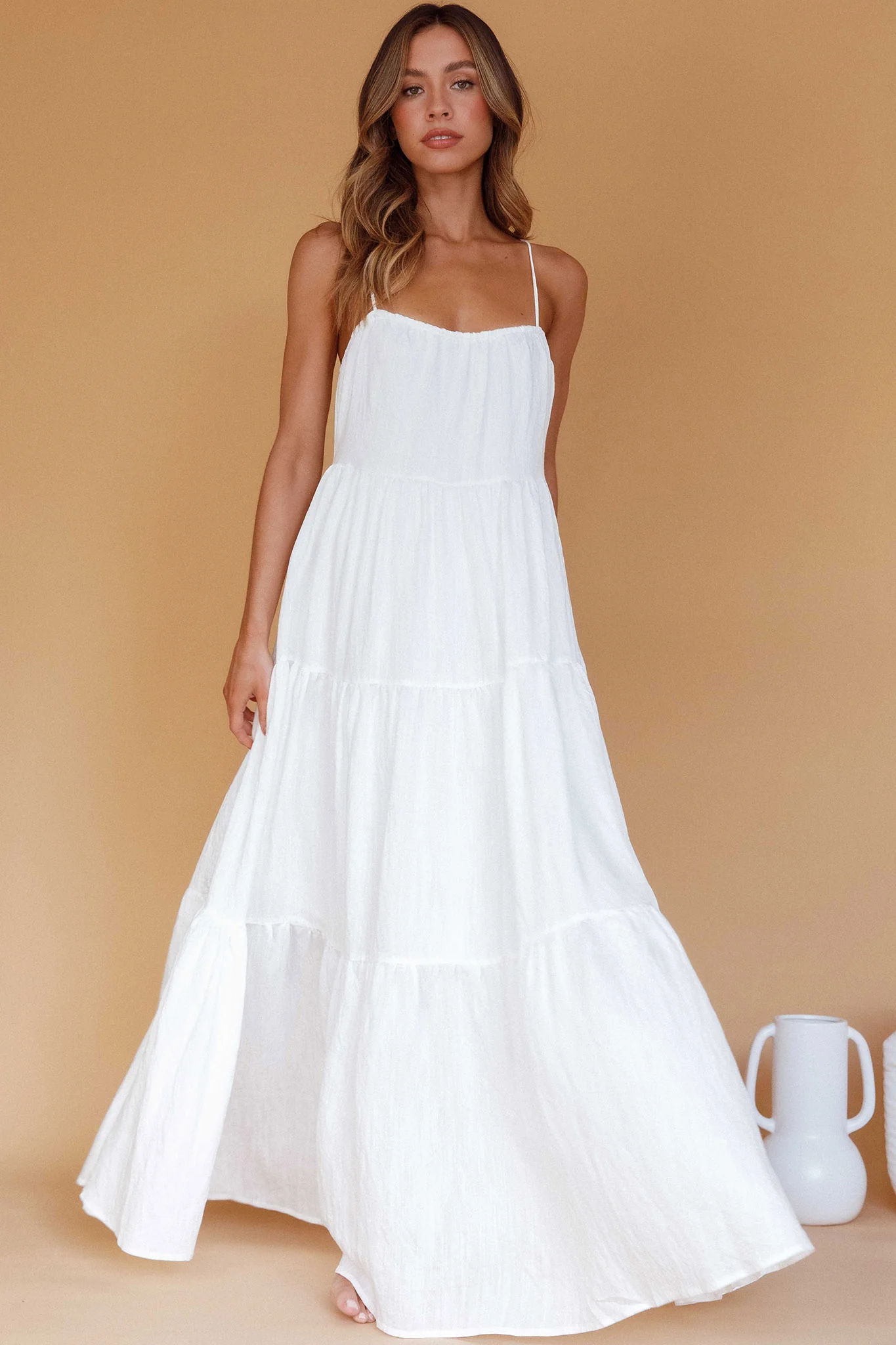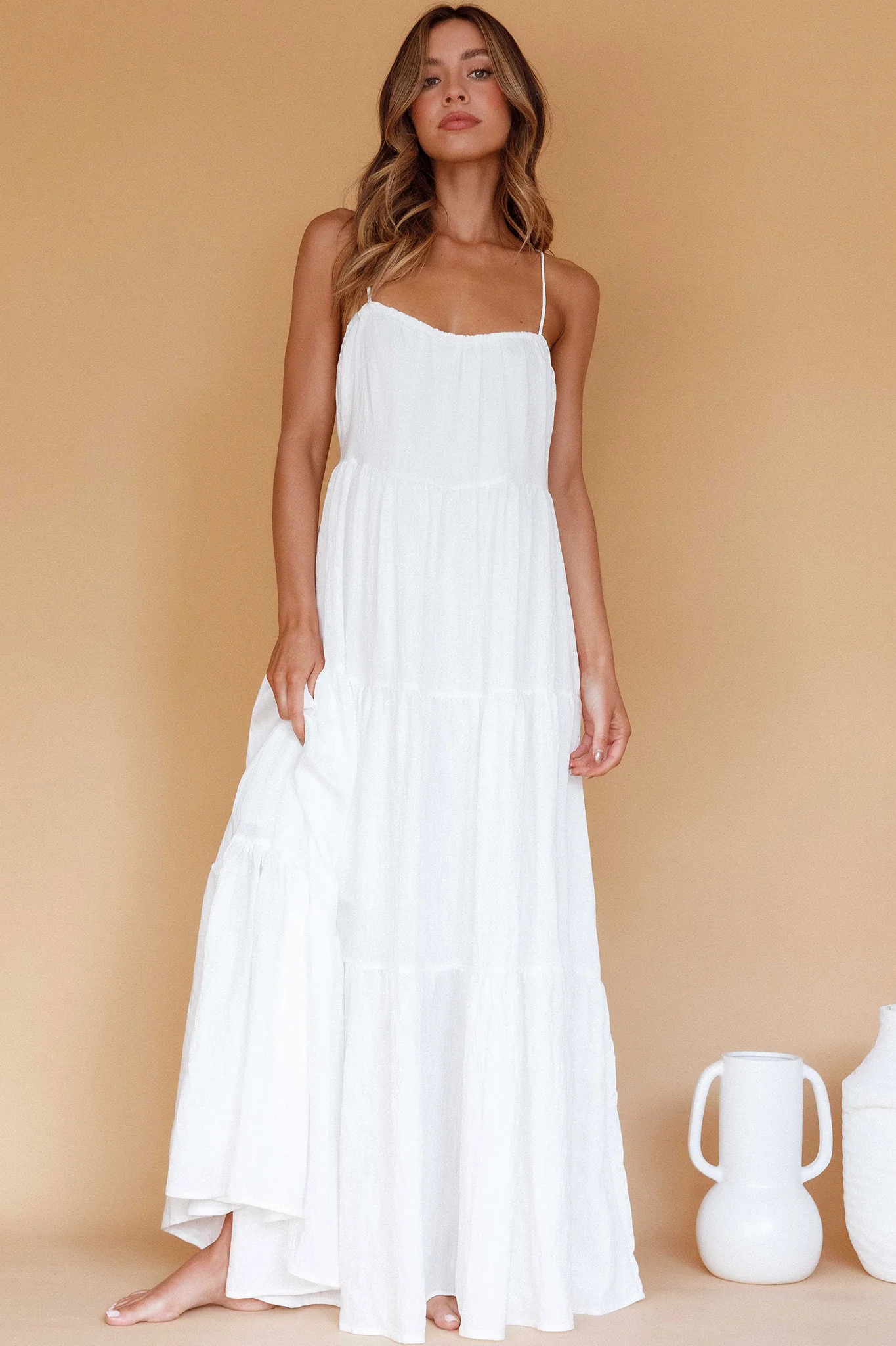 Social Butterfly Cut-Out Waist Midi Dress White Brown