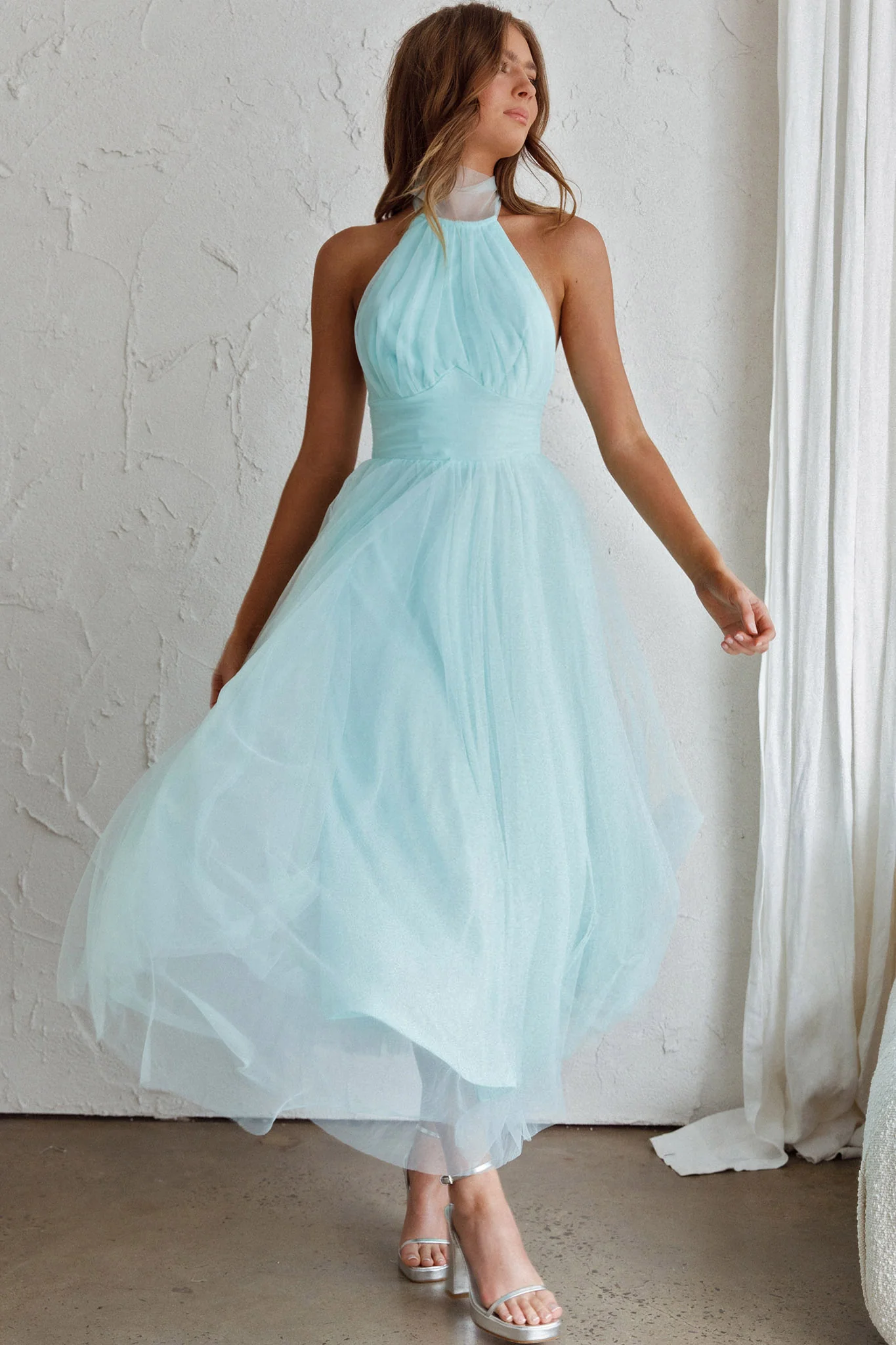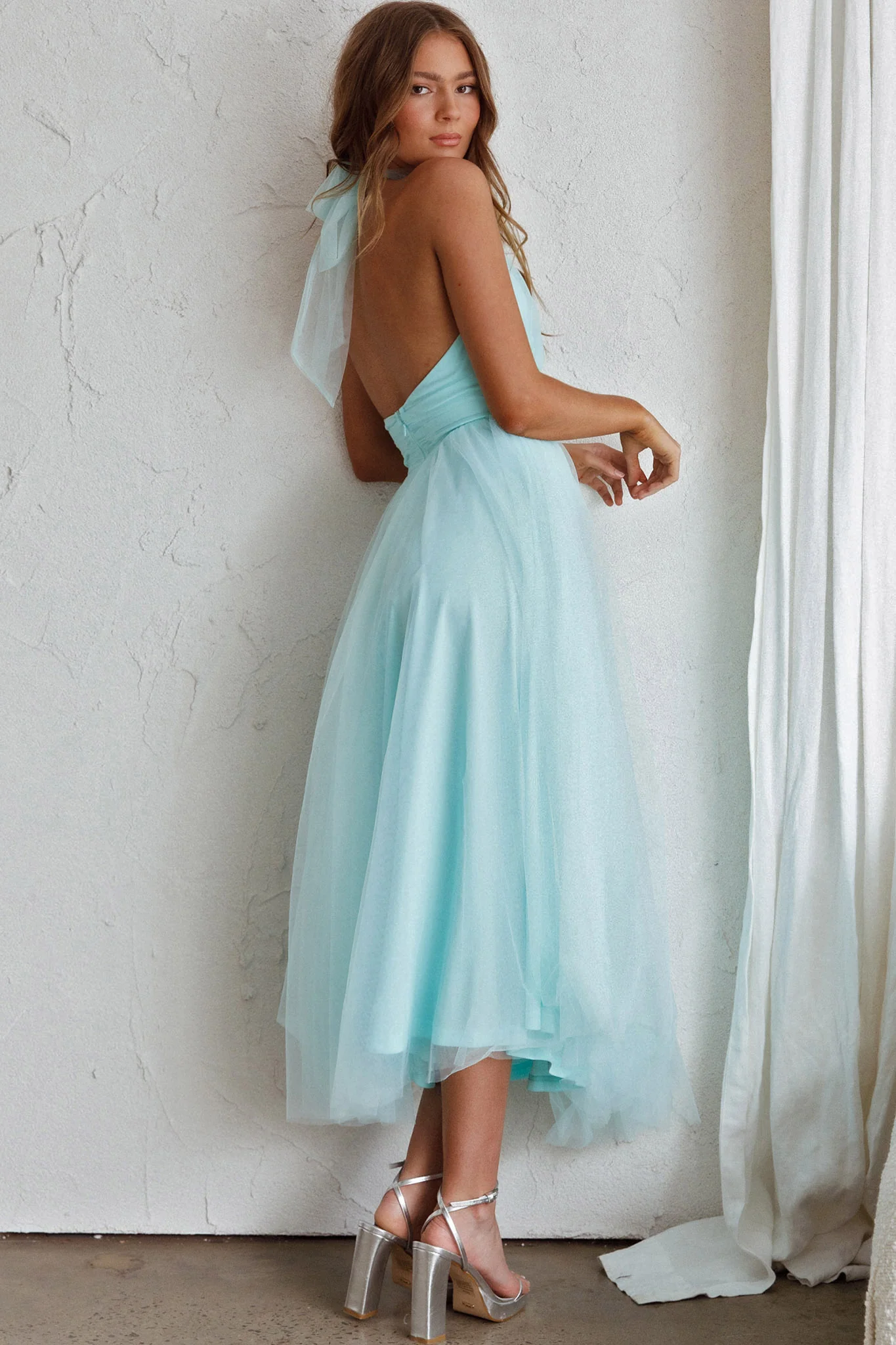 Annya Lace-Up Back Midi Dress Jacquard Aqua