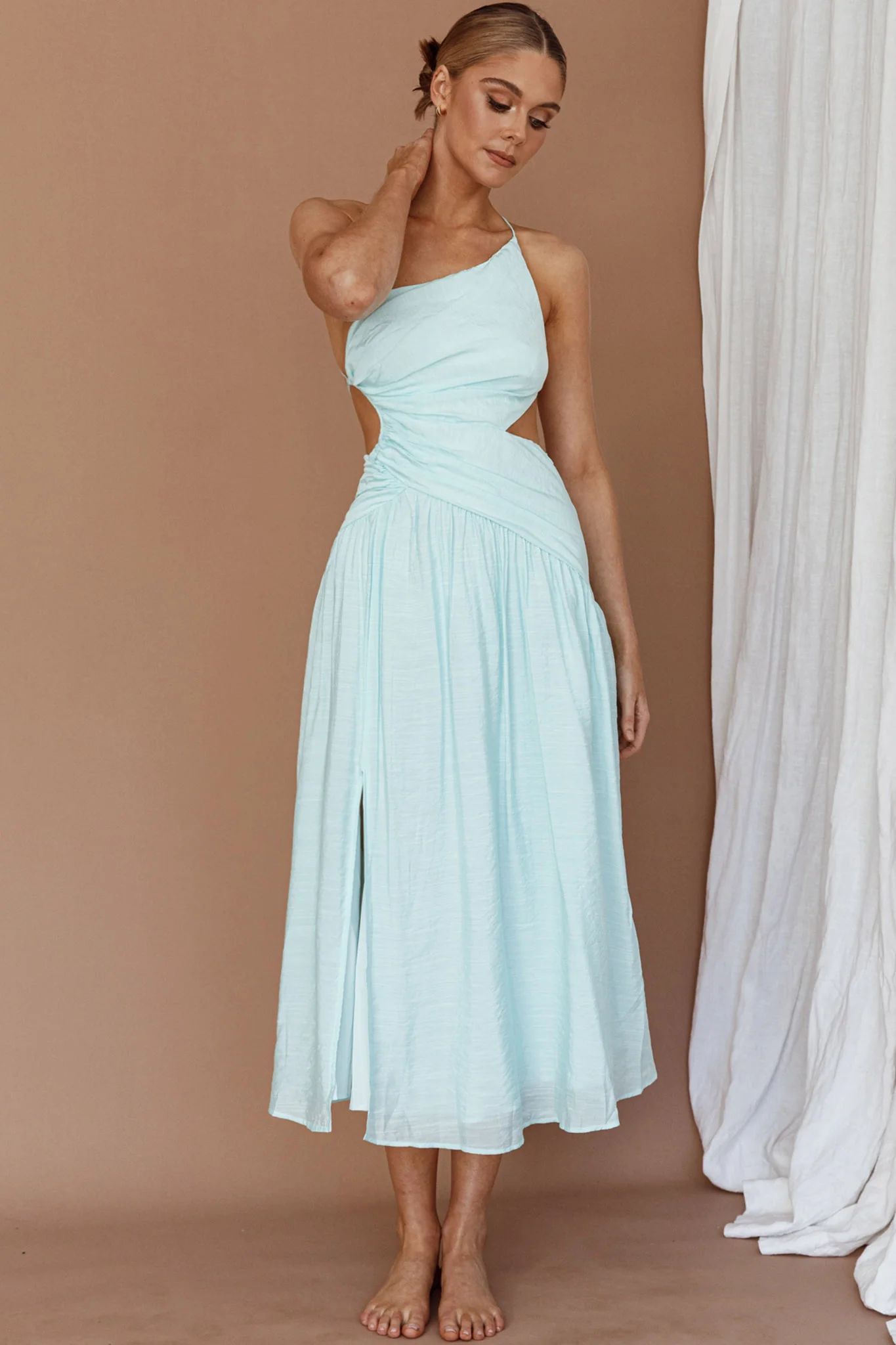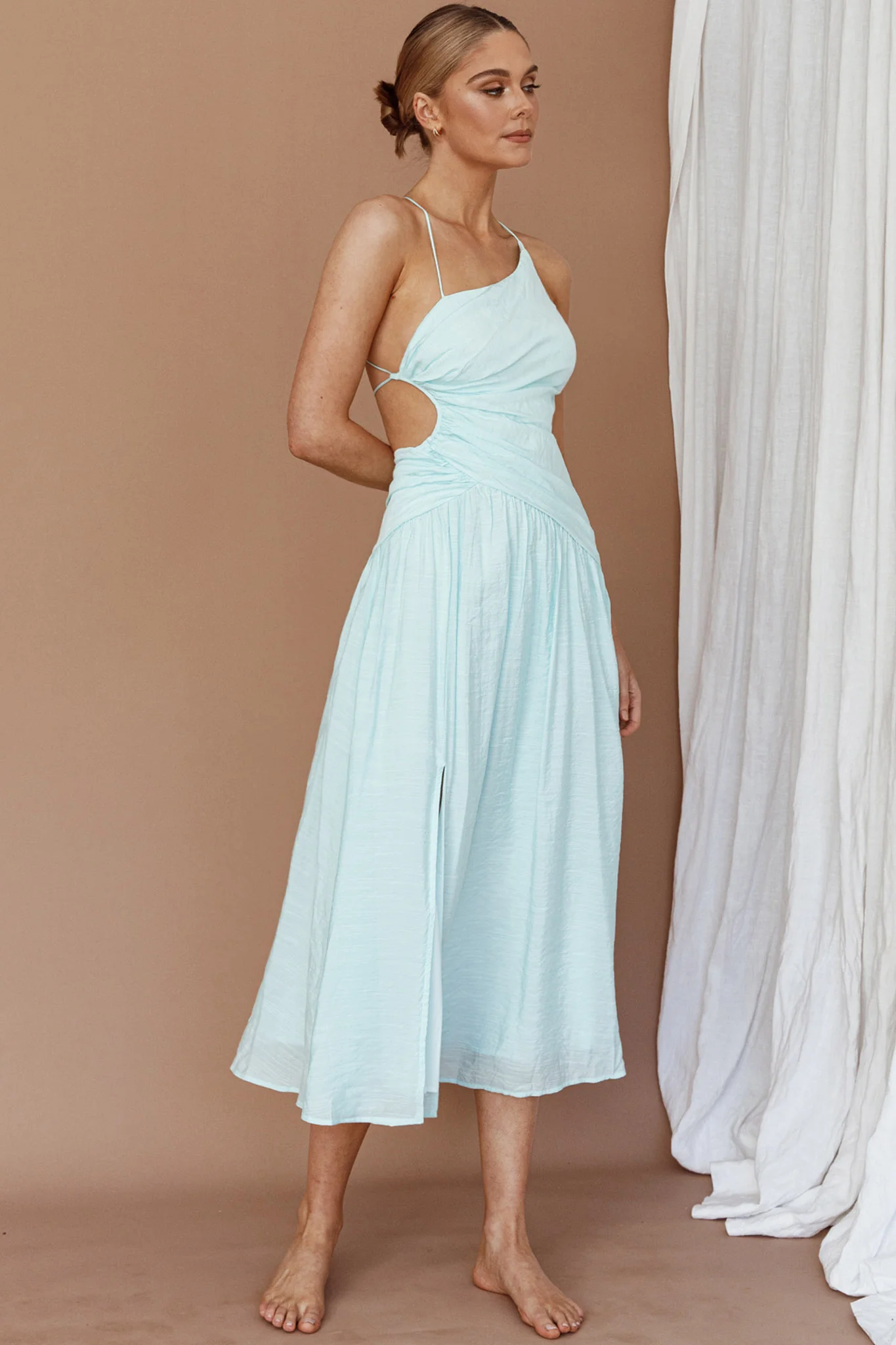 Pale Moonlight Knot Strap Midi Dress Steel Blue