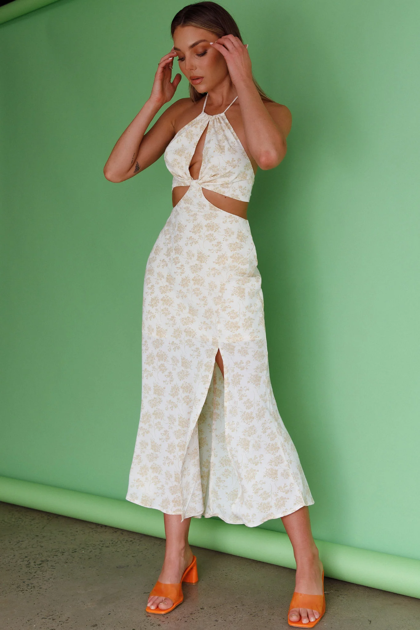 Rising Sun Cut-Out Bodice Dress Floral Print Yellow